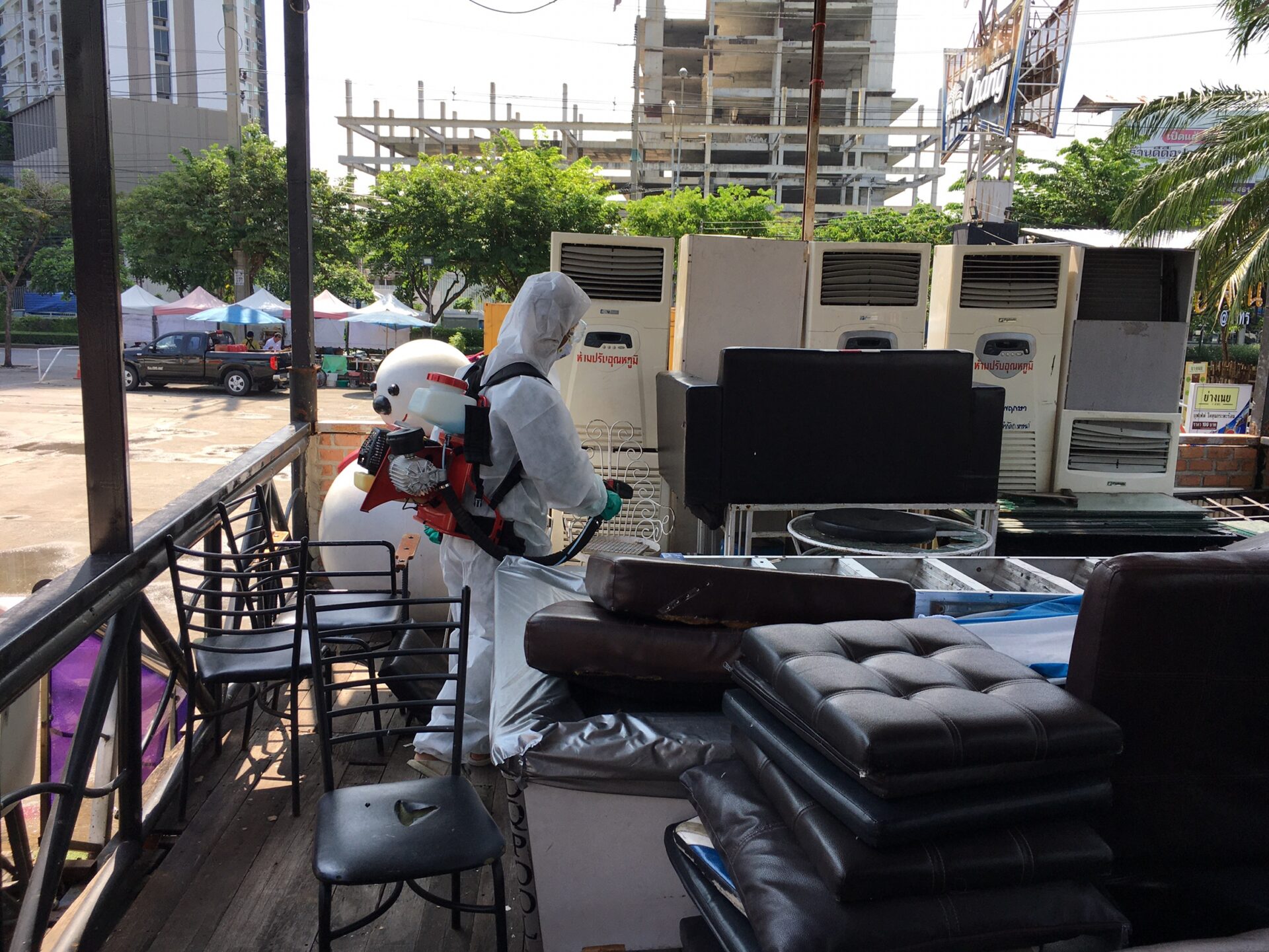 เช้าวันนี้ (4ก.ย.) เจ้าหน้าที่จากกองควบคุมโรค สำนักอนามัย กรุงเทพมหานคร (กทม.) ลงพื้นที่มาฉีดพ่นยาฆ่าเชื้อทำความสะอาด ร้านสามวันสองคืน สาขาพระราม3 ซึ่งเป็นหนึ่งในสถานที่ที่ผู้ป่วยติดเชื้อโควิด-19 รายแรกของไทย หลังเพิ่งผ่านพ้นมา 100 วัน ปลอดเชื้อในประเทศ โดยข้อมูลระบุว่าก่อนหน้านี้เป็นดีเจอยู่ในร้าน ย่านพระราม 3 และ พระราม 5