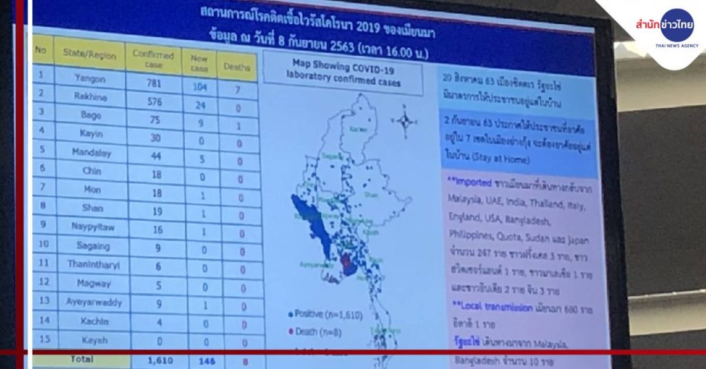 นายธนิตพล ไชยนันทน์ ที่ปรึกษา รมช.สาธารณสุข กล่าวถึงมาตรการป้องกันการแพร่ระบาดของโรคโควิด-19 จากเมียนมาเข้ามาประเทศไทย ว่า มาตรการที่ 1.กระทรวงสาธารณสุข จะยกระดับจากเดิมที่มีการระบาดเฝ้าระวังการนำเชื้อเข้าประเทศทางอากาศ มาเป็นการเฝ้าระวังเข้มข้นทางบก และสนับสนุนเวชภัณฑ์ อุปกรณ์ต่างๆ ที่เกี่ยวข้องกับการป้องกันการดูแลรักษาผู้ติดเชื้อ ไปยังโรงพยาบาลบริเวณชายแดนเรียบร้อยแล้ว คาดว่าจะถึงภายในวันนี้ (9 ก.ย.)