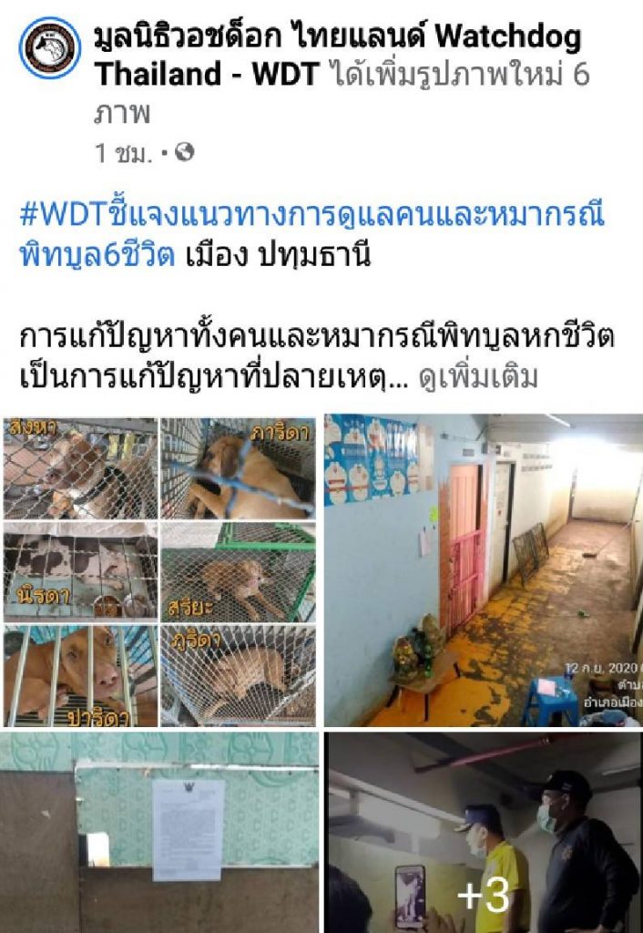 เพจเฟซบุ๊คมูลนิธิวอชด็อก ไทยแลนด์ Watchdog Thailand – WDT โพสต์ชี้แจงความคืบหน้า แนวทางการดูแลคนและหมาพิตบูล 6 ตัว เมืองปทุมธานี ว่าการแก้ปัญหาทั้งคนและหมากรณีพิตบูล 6 ชีวิต เป็นการแก้ปัญหาที่ปลายเหตุ การแก้ปัญหาที่ปลายเหตุเช่นนี้จึงต้องกระทำด้วยความระมัดระวัง ทั้งยังต้องให้อยู่ในกรอบของกฏหมายและเมตตาธรรม มูลนิธิไม่ได้สนับสนุนให้คนเลี้ยงสัตว์อย่างไม่รับผิดชอบ แต่ในขณะเดียวกัน ก็ไม่สนับสนุนให้ใครผลักภาระหรือผลักปัญหาของตัวเองไปให้ผู้อื่นอย่างไร้ความรับผิดชอบด้วยเช่นกัน