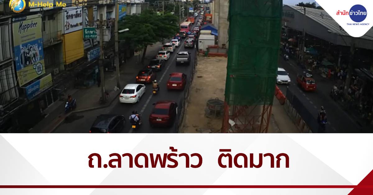 กทม. 14 ก.ย.-สวพ.FM91 รายงานจราจรเช้าวันจันทร์ ถนนลาดพร้าว ขาเข้า ผ่านใต้ทางด่วนลาดพร้าว ต่อเนื่องแยกรัชดา-ลาดพร้าว ติดขัดมาก ท้ายแถวสะสมอยู่ที่แยกบางกะปิ