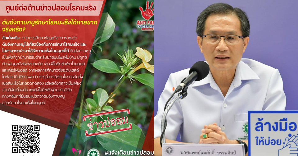 กรุงเทพฯ 15 ก.ย.- สถาบันมะเร็งฯ เตือนข่าวปลอม “ต้นอังกาบหนูรักษาโรคมะเร็งได้หายขาด