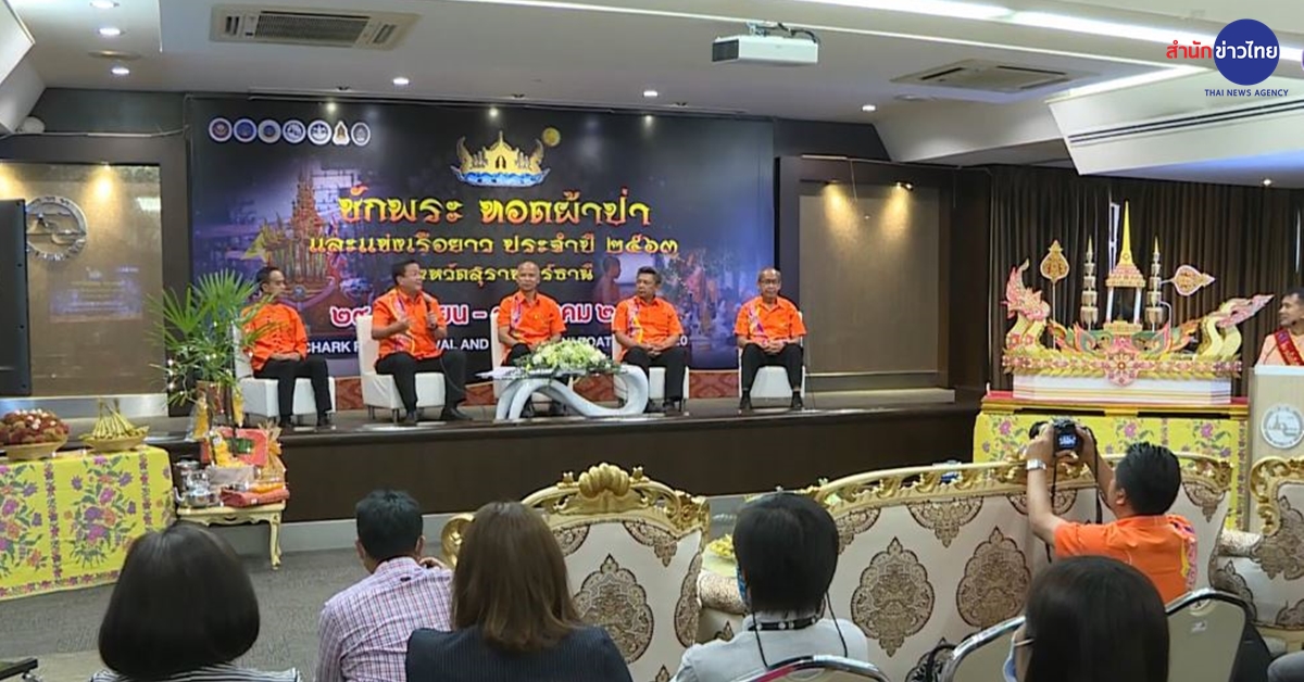 นายนิธี สีแพร ผู้อำนวยการภูมิภาคภาคใต้ การท่องเที่ยวแห่งประเทศไทย (ททท.) แถลงข่าวจัดงานชักพระ ทอดผ้าป่า และแข่งเรือยาว ประจำปี 2563 ที่ จ.สุราษฎร์ธานี ระหว่างวันที่ 29 กันยายน – 7 ตุลาคมนี้ บริเวณ ถ.หน้าเมือง ถ.บ้านดอน ถ.ศรีตาปี อ.เมืองสุราษฎร์ธานี