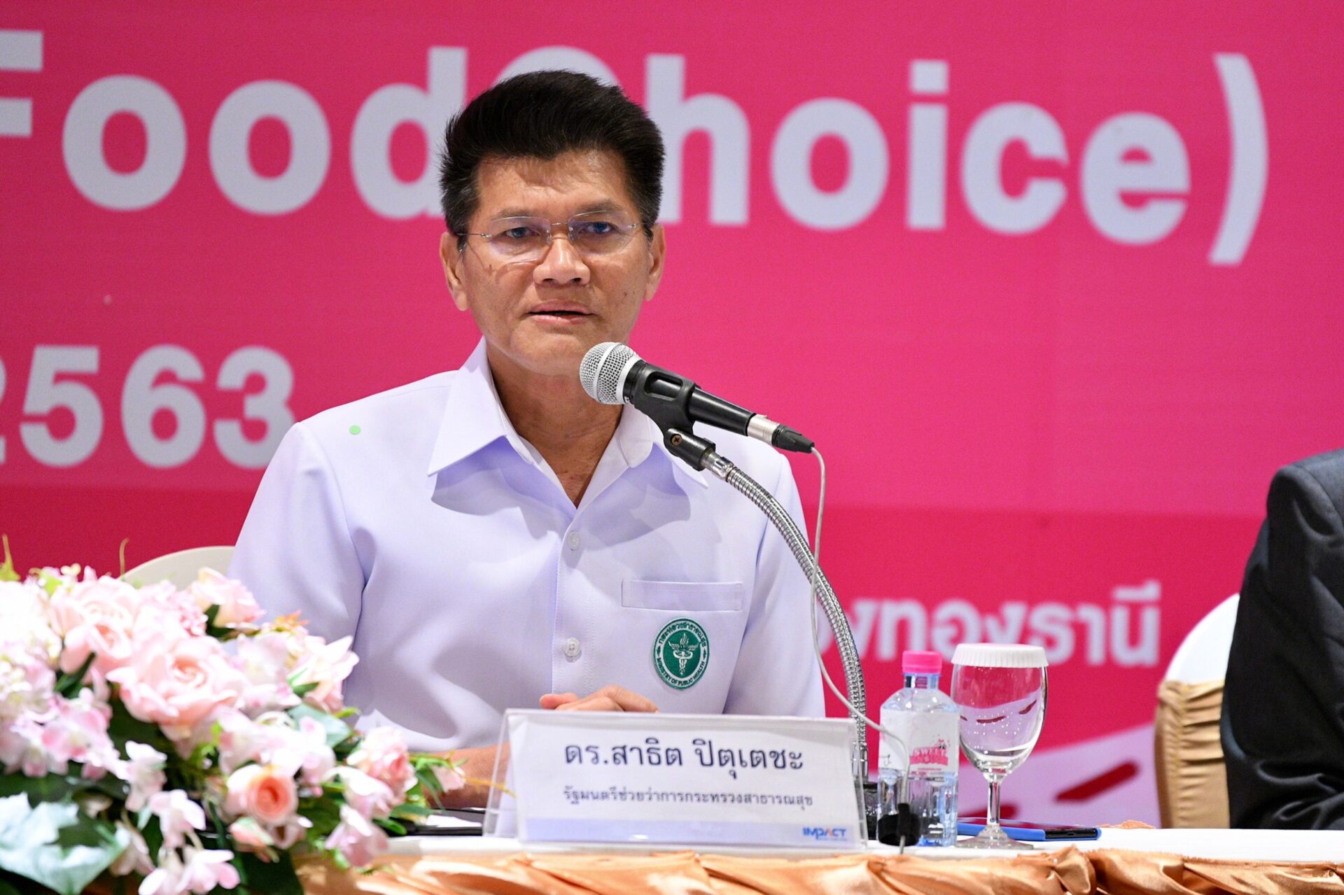 นายสาธิต ปิตุเตชะ รัฐมนตรีช่วยว่าการกระทรวงสาธารณสุข และรองประธานกรรมการกองทุนสนับสนุนการสร้างเสริมสุขภาพ (สสส.) (คนที่ 1) พร้อมด้วย พญ.พรรณพิมล วิปุลากร อธิบดีกรมอนามัย นายสุปรีดา อดุลยานนท์ ผู้จัดการกองทุนสนับสนุนการสร้างเสริมสุขภาพ (สสส.) และนายชัย วุฒิวิวัฒน์ชัย ผู้อำนวยการศูนย์เทคโนโลยีอิเล็กทรอนิกส์และคอมพิวเตอร์แห่งชาติ (NECTEC) ร่วมแถลงข่าวผลการพัฒนาเครื่องมือให้ความรู้ด้านโภชนาการ (Foodchoice)