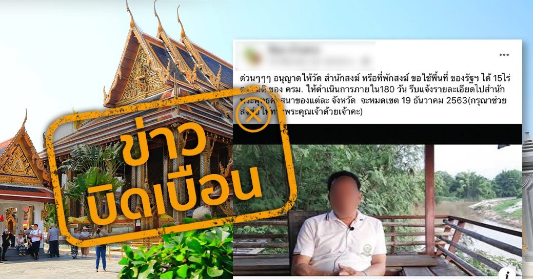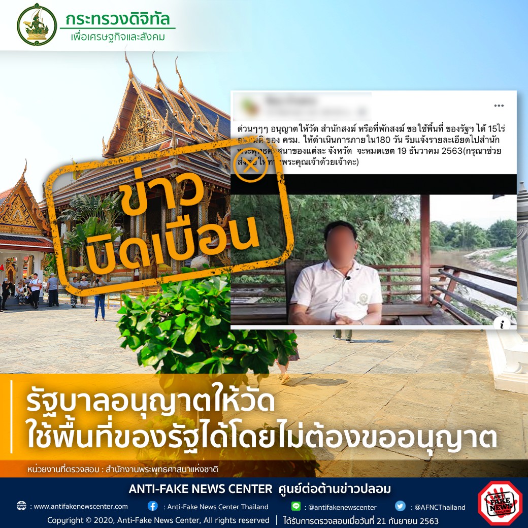 พศ.21 ก.ย.-พศ.แจงข่าวบิดเบือน รัฐบาลอนุญาตให้วัด ใช้พื้นที่ของรัฐได้โดยไม่ต้องขออนุญาต