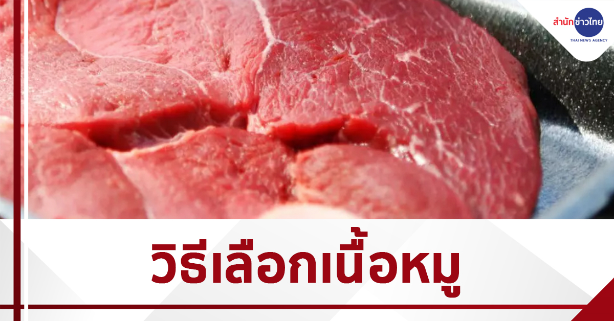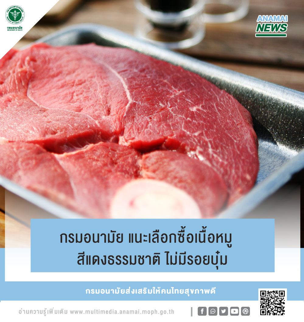 กรมอนามัย 23ก.ย.-กรมอนามัย แนะวิธีเลือกซื้อเนื้อหมูที่มีสีแดงธรรมชาติ ใช้นิ้วกดดู เนื้อจะยืดหยุ่น ไม่มีรอยบุ๋ม ไม่มีเม็ดสีขาวใสคล้ายเม็ดสาคู
