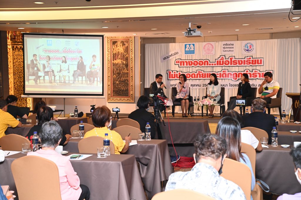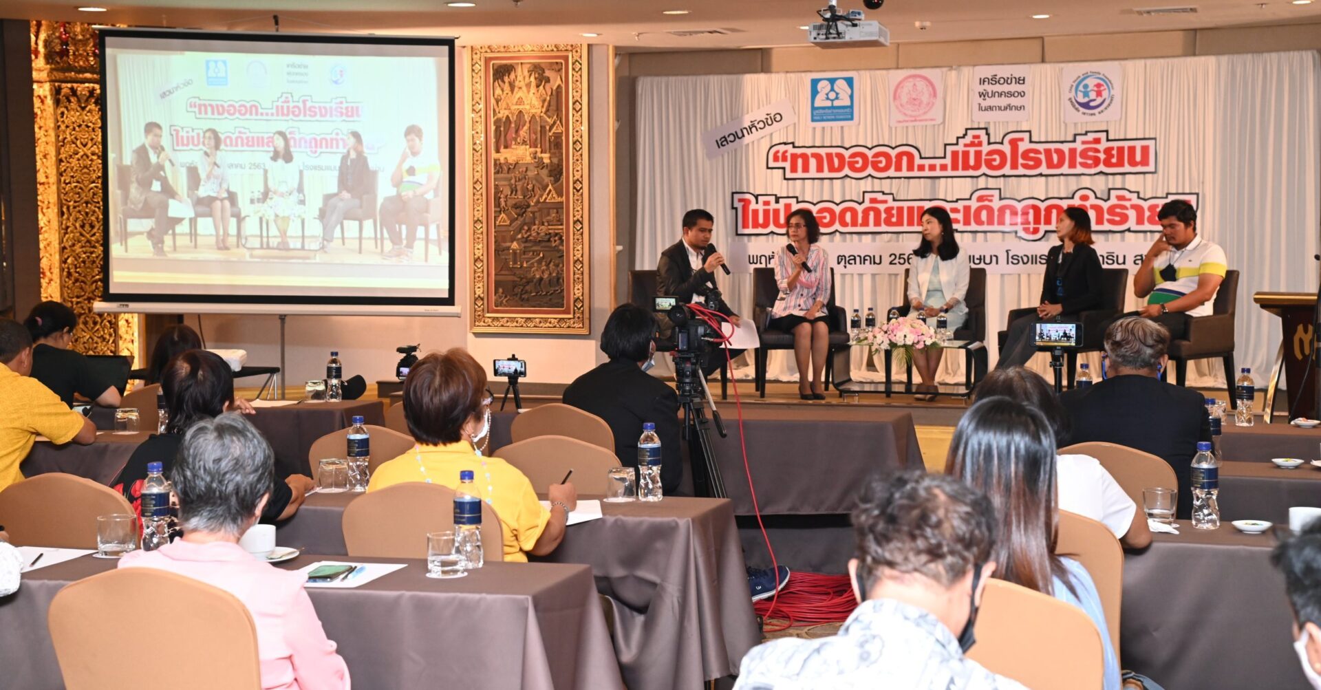 ในเวทีเสวนาหัวข้อ “ทางออก…เมื่อโรงเรียนไม่ปลอดภัยและเด็กถูกทำร้าย” จัดโดยมูลนิธิเด็กเยาวชนและครอบครัว มูลนิธิเครือข่ายครอบครัว เครือข่ายผู้ปกครองฯ กระทรวงการพัฒนาสังคมและความมั่นคงของมนุษย์
