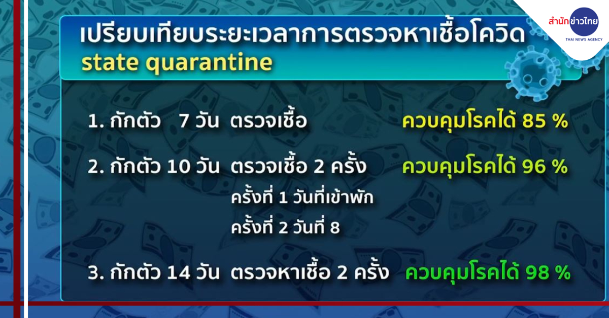 กรุงเทพฯ 1 ต.ค. – หลังจากสถานการณ์โควิด-19 ในหลายประเทศเริ่มคลี่คลาย บางประเทศมีการผ่อนปรนมาตรการกักตัว จากเดิม 14 วัน เหลือ 7 วัน ซึ่งไทยกำลังเตรียมพิจารณาประเมินความปลอดภัยของประชาชน และความเหมาะสมในการขับเคลื่อนทางเศรษฐกิจ. – สำนักข่าวไทย