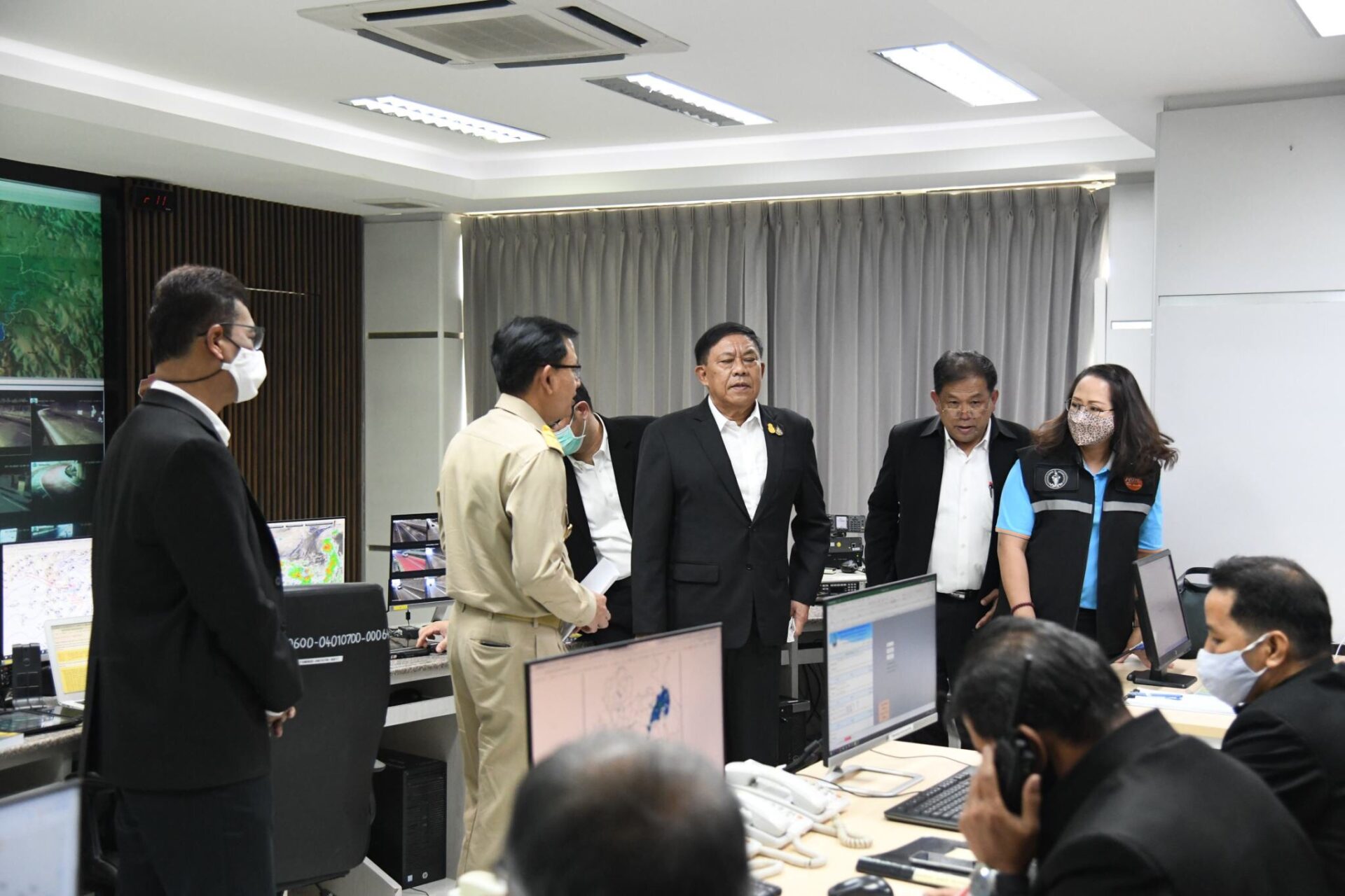 เที่ยงวันนี้ (7ต.ค.) พล.ต.อ.อัศวิน ขวัญเมือง ผู้ว่าราชการกรุงเทพมหานคร (ผู้ว่าฯกทม.) ตรวจเยี่ยมการทำงานของศูนย์ควบคุมระบบป้องกันน้ำท่วมกรุงเทพมหานคร สำนักการระบายน้ำ เพื่อเตรียมความพร้อมรับมือผลกระทบจากพายุดีเปรสชั่นที่อาจทำให้เกิดฝนตกในพื้นที่ต่างๆ ของประเทศไทย รวมถึงพื้นที่กรุงเทพมหานคร ช่วงระหว่างวันที่ 7-9 ต.ค.นี้ โดยมี นายสมพงษ์ เวียงแก้ว และนางจินดารัตน์ ชโยธิน ที่ปรึกษาของผู้ว่าราชการกรุงเทพมหานคร ร่วมตรวจเยี่ยม นายณรงค์ เรืองศรี ผู้อำนวยการสำนักการระบายน้ำ รายงานข้อมูลการปฏิบัติงาน ณ ศูนย์ควบคุมระบบป้องกันน้ำท่วมกรุงเทพมหานคร ชั้น 6 สำนักการระบายน้ำ ศาลาว่าการกรุงเทพมหานคร 2 เขตดินแดง