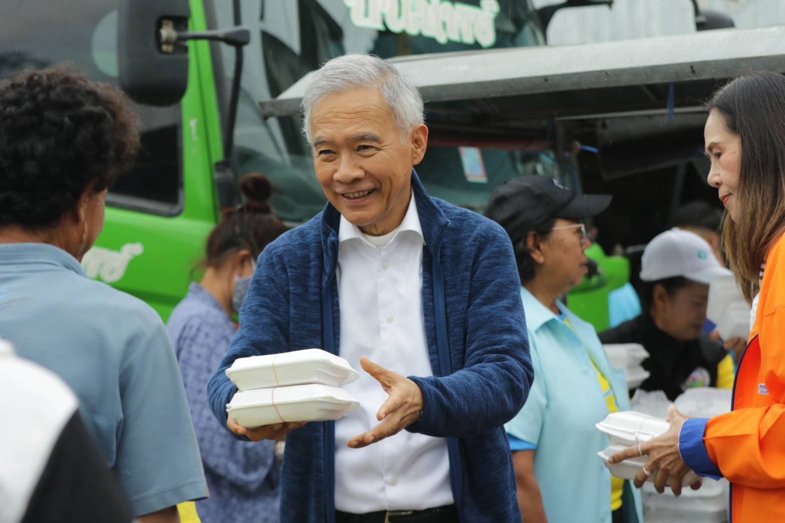 “วันนี้ มาให้กำลังใจพี่น้องประชาชนอยากให้ทุกท่านต่อสู้เรื่องเศรษฐกิจและต่อสู้กับปัญหาน้ำท่วมด้วย อะไรที่เราร่วมมือกัน เราชนะเราฝ่าวิกฤตได้ วันนี้ ผมมาพร้อมกับ คุณวรรณรัตน์ ชาญนุกูล อดีตหัวหน้าพรรคชาติพัฒนา และอดีตรัฐมนตรีพลังงานและอุตสาหกรรม และท่านประเสริฐ บุญชัยสุข อดีตรัฐมนตรีอุตสาหกรรม คุณเทวัญ ลิปตพัลลภ หัวหน้าพรรคชาติพัฒนา และอดีตรัฐมนตรีสำนักนายกฯ และ ส.ส.วัชรพล โตมรศักดิ์ เป็นกรรมาธิการงบประมาณ
