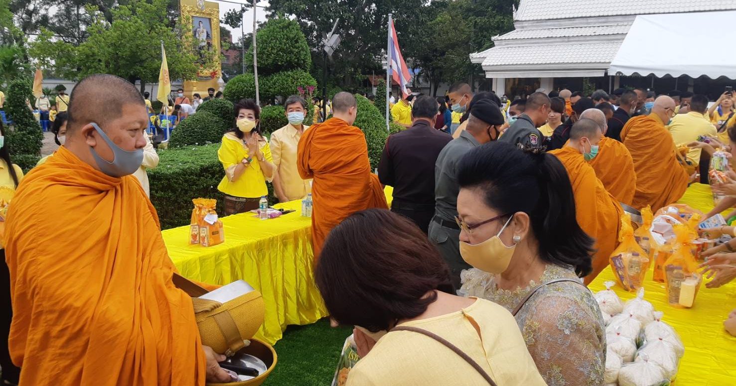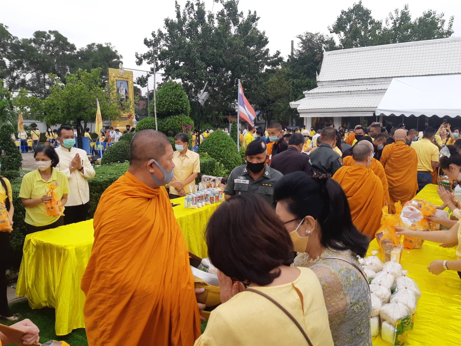 กรุงเทพฯ 13 ต.ค.- วัดพระราม 9 กาญจนาภิเษก นำพุทธศาสนิกชนร่วมทำบุญตักบาตร น้อมอุทิศถวายเป็นพระราชกุศล พระบาทสมเด็จพระบรมชนกาธิเบศร มหาภูมิพลอดุลยเดชมหาราช บรมนาถบพิตร เนื่องในวันคล้ายวันสวรรคต 13 ตุลาคม เป็นปีที่4