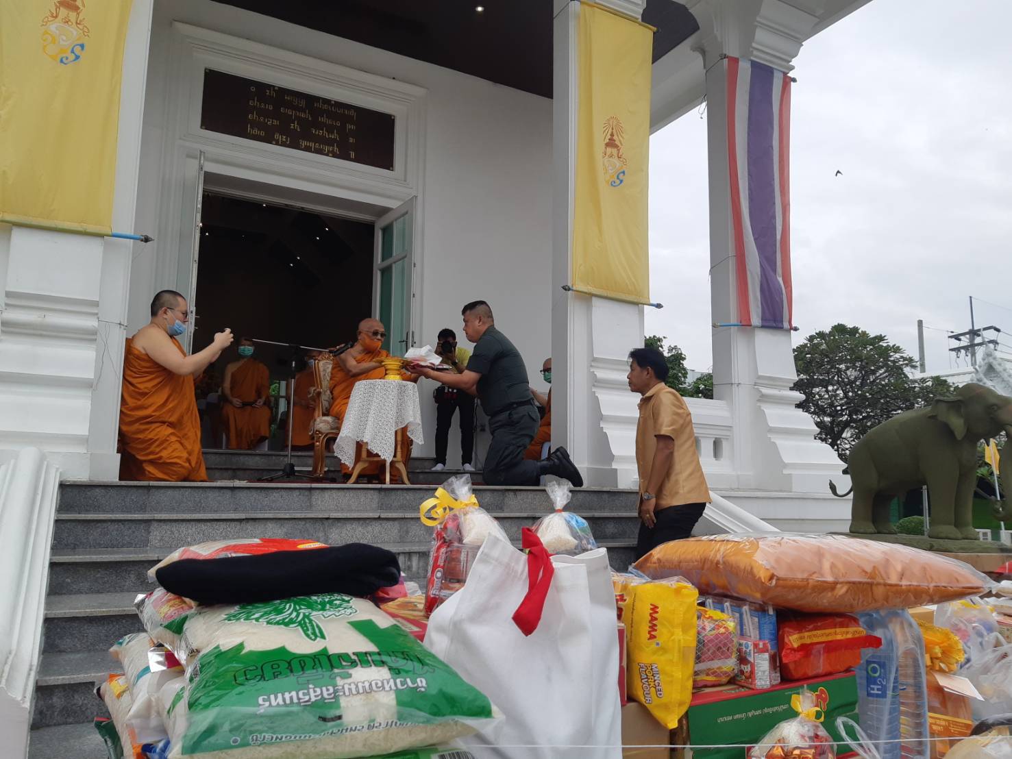 สำหรับข้าวสาร อาหารแห้ง สังฆทานเครื่องอุปโภค บริโภค และยารักษาโรค ที่พุทธศาสนิกชนนำมาร่วมทำบุญทางวัดพระราม 9 กาญจนาภิเษก จะนำ ไปมอบให้แก่ โรงเรียนตำรวจตระเวนชายแดนทั่วประเทศ และมอบให้กับผู้ประสบภัยน้ำท่วม ที่ จ.นครราชสีมา