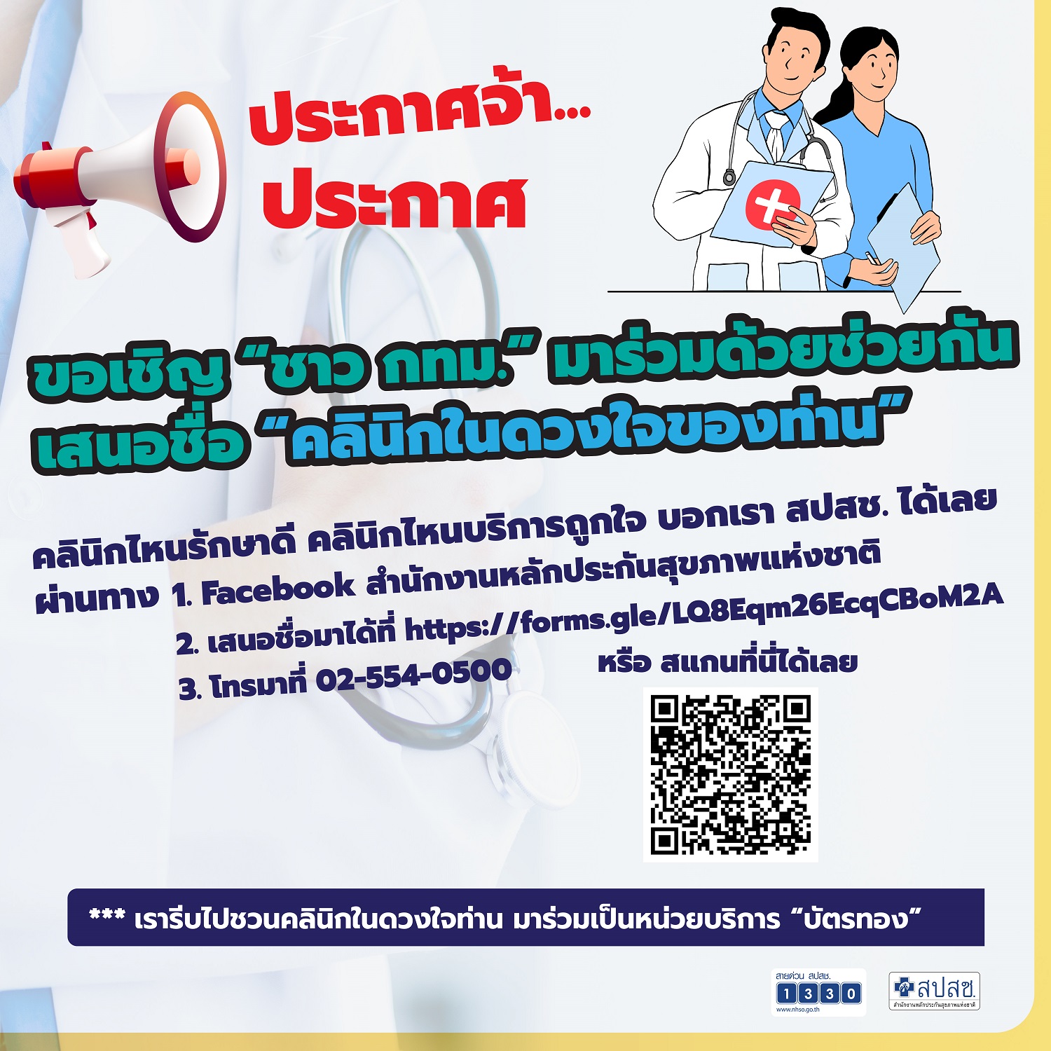 “ไปรับบริการในคลินิกหรือโรงพยาบาลเอกชนแล้วรู้สึกว่าได้รับการให้บริการที่ดี แพทย์พยาบาลให้การดูแลดีหรือจะด้วยเหตุผลอื่นๆ ที่ทำให้เกิดความประทับใจในการให้บริการ เราเปิดให้ประชาชนสามารถเสนอรายชื่อหน่วยบริการเหล่านี้เข้ามาได้ทาง Facebook สปสช. (https://web.facebook.com/NHSO.Thailand) หรือที่ https://forms.gle/o1M7N62h41v5Ae4n9 หรือโทรศัพท์แจ้งมาได้ที่ 02-554-0500 เพื่อที่ทาง สปสช.จะได้เข้าไปเจรจาเชิญชวนให้หน่วยบริการเหล่านี้มาเข้าร่วมให้บริการแก่ประชาชนต่อไป” นพ.ศักดิ์ชัย กล่าว.-สำนักข่าวไทย