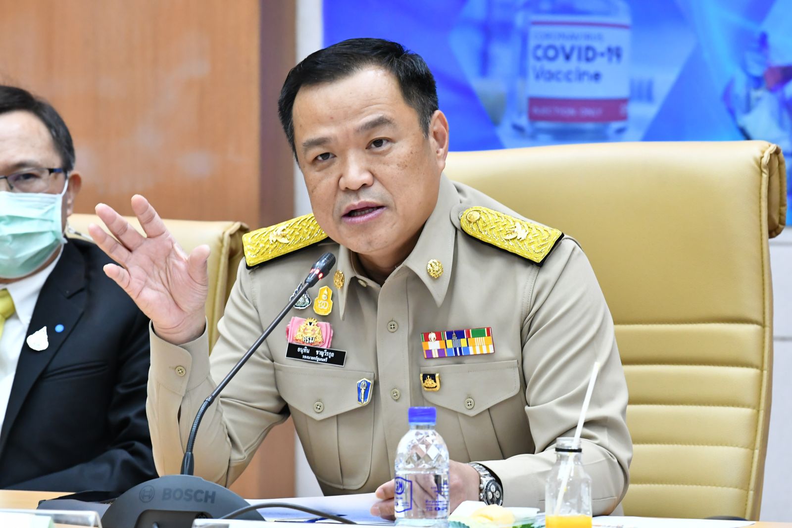 นายอนุทิน ชาญวีรกูล รองนายกรัฐมนตรีและรัฐมนตรีว่าการกระทรวงสาธารณสุข (สธ.) แถลงข่าว “ความคืบหน้าการจัดหาวัคซีนโควิด-19 ของประชาชนไทย”พร้อมด้วย นพ.เกียรติภูมิ วงศ์รจิต ปลัดกระทรวงสาธารณสุข , นพ.ศุภกิจ ศิริลักษณ์ รักษาราชการแทนอธิบดีกรมวิทยาศาสตร์การแพทย์ และ นพ.นคร เปรมศรี ผู้อำนวยการสถาบันวัคซีนแห่งชาติ ว่า รัฐบาลให้ความสำคัญกับการจัดหาวัคซีนป้องกันโรคติดเชื้อไวรัสโคโรนา 2019 หรือโควิด 19 ได้จัดสรรงบประมาณสนับสนุนการวิจัยและพัฒนาวัคซีนโควิด-19เพื่อให้คนไทยเข้าถึงวัคซีน ตั้งเป้าหมายครอบคลุมร้อยละ 50 ลดการแพร่ระบาดของโรคโควิด-19ได้โดยเร็วที่สุด ในการจัดหาวัคซีนโควิด-19 มี 3แนวทาง คือจัดหาวัคซีนโควิด-19 โดยการจองล่วงหน้าผ่าน COVAX Facility และการตกลงแบบทวิภาคี (Bilateral Agreement), การเจรจาขอความร่วมมือรับการถ่ายทอดเทคโนโลยีการผลิตวัคซีนโควิด-19 จากต่างประเทศ และการพัฒนาวัคซีนเองในประเทศ