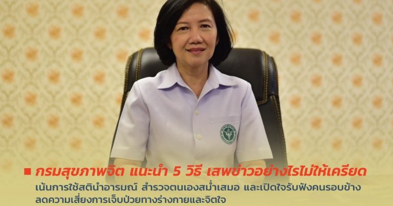 กระทรวงสาธารณสุข 19 ต.ค.-กรมสุขภาพจิตแนะ 5 วิธีติดตามข่าวไม่ให้เครียด เน้นใช้สตินำอารมณ์ สำรวจตนเองสม่ำเสมอ และเปิดใจรับฟังคนรอบข้าง
