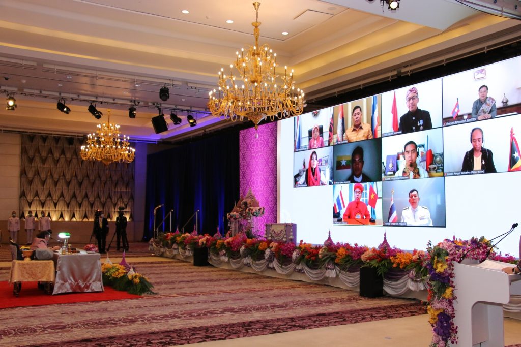 กรุงเทพฯ22ต.ค..-มูลนิธิรางวัลสมเด็จเจ้าฟ้ามหาจักรี จัดประชุมวิชาการรางวัลสมเด็จเจ้าฟ้ามหาจักรี ครั้งที่ 3 จาก 11 ประเทศ อาเซียนและติมอร์-เลสเต การนี้สมเด็จพระกนิษฐาธิราชเจ้า กรมสมเด็จพระเทพรัตนราชสุดา สยามบรมราชกุมารี ฯ ทรงพระกรุณาโปรดเกล้าฯ เสด็จเป็นประธานเปิดการประชุม ทรงย้ำ “โควิด-19 ถึงแม้โรงเรียนจะปิดแต่การศึกษานั้นปิดไม่ได้” บทบาทของครูมีความสำคัญมากต่อชีวิตของเด็ก การเป็นครูนั้นไม่ง่าย การเป็นครูดีเด่นยิ่งไม่ง่าย เพราะการเป็นครูที่ยอดเยี่ยมต้องใช้ความทุ่มเท เสียสละ