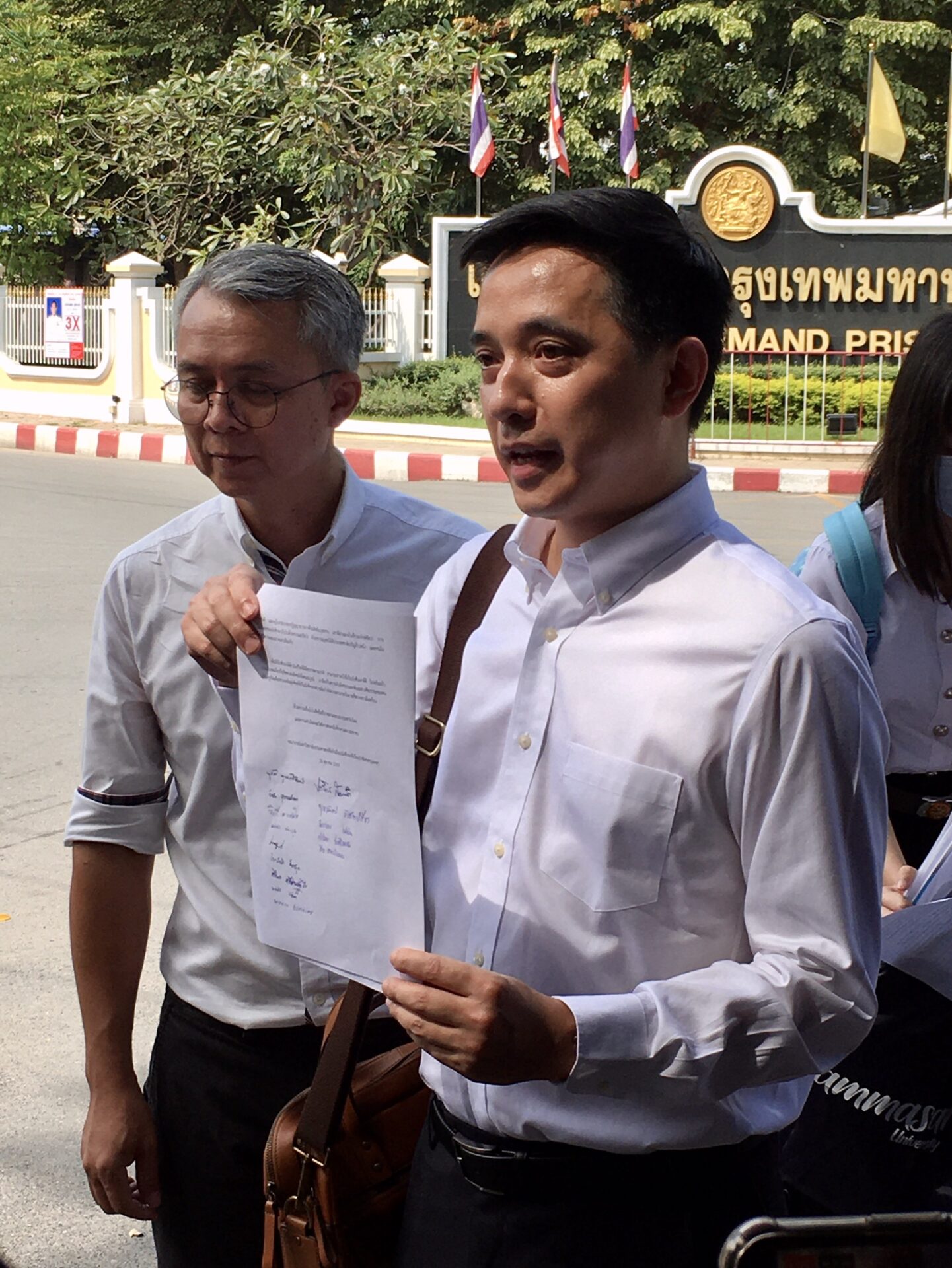 กรุงเทพฯ 26 ต.ค.-อาจารย์และเพื่อนนักศึกษาจากมหาวิทยาลัยธรรมศาสตร์ เข้าเยี่ยม “รุ้ง” และ “เพนกวิน” ที่เรือนจำพิเศษกรุงเทพมหานคร พร้อมอ่านแถลงการณ์ให้ปล่อยตัวนักศึกษา