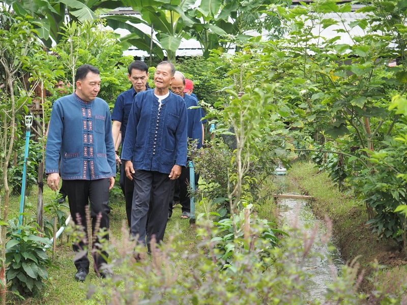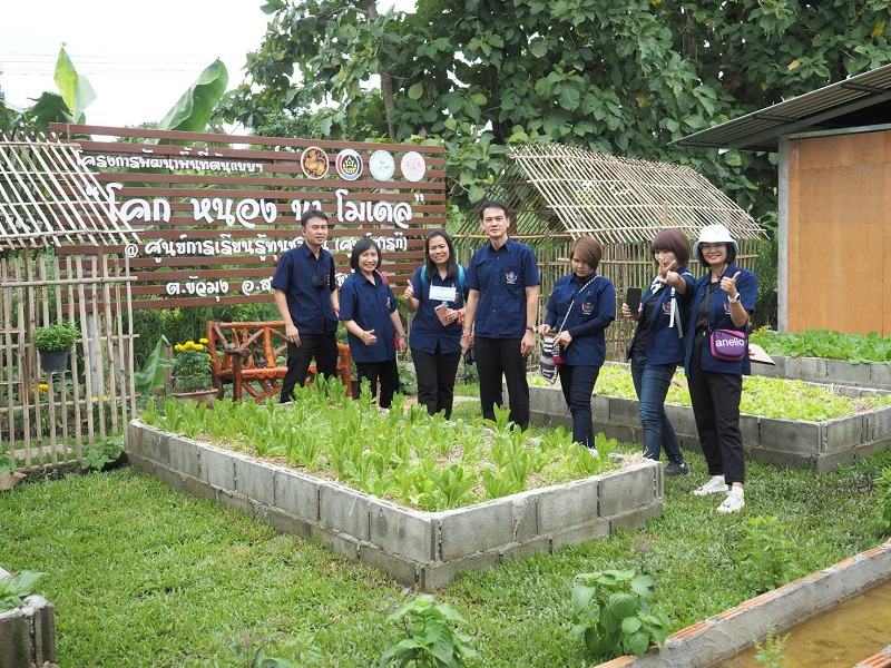 (7) แบ่งกลุ่มศึกษาเรียนรู้ จำนวน 9 ฐาน และ ครัวเรือนผู้นำต้นแบบการพัฒนาคุณภาพชีวิตตามหลักทฤษฎีใหม่ รูปแบบประยุกต์ “โคก หนอง นา โมเดล” (นายอนนท์ ยศอนัน)