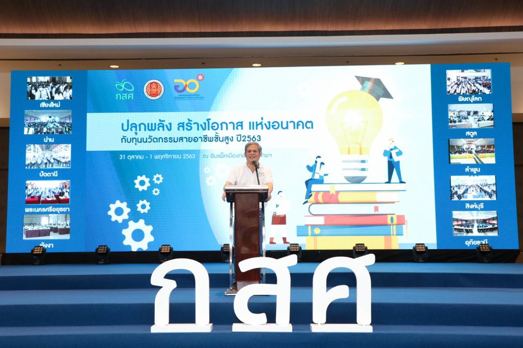 กองทุนเพื่อความเสมอภาคทางการศึกษา (กสศ.) จัดกิจกรรม “ปลุกพลัง สร้างโอกาสแห่งอนาคต กับทุนนวัตกรรมสายอาชีพชั้นสูง ปีการศึกษา 2563” โดยมีนักศึกษาทุนนวัตกรรมสายอาชีพชั้นสูงรุ่นที่ 2 เข้าร่วมกิจกรรม มีการถ่ายทอดสดสู่ 23 สถาบันการศึกษาทั่วประเทศ ในระบบออนไลน์ เนื่องจากสถานการณ์โควิด-19