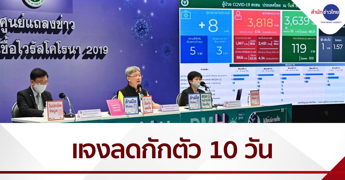 พร้อมย้ำว่าในกระบวนการลดการกักตัวนี้ จะต้องมีการประเมินผล เพื่อให้เกิดการรองรับกับสถานพยาบาล โดยหากพบว่า มีอัตราผู้ป่วยใหม่รายวันเพิ่มขึ้นวันละ 50 คนก็จะต้องกลับทบทวนและกลับมากักตัว14วันตามเดิม