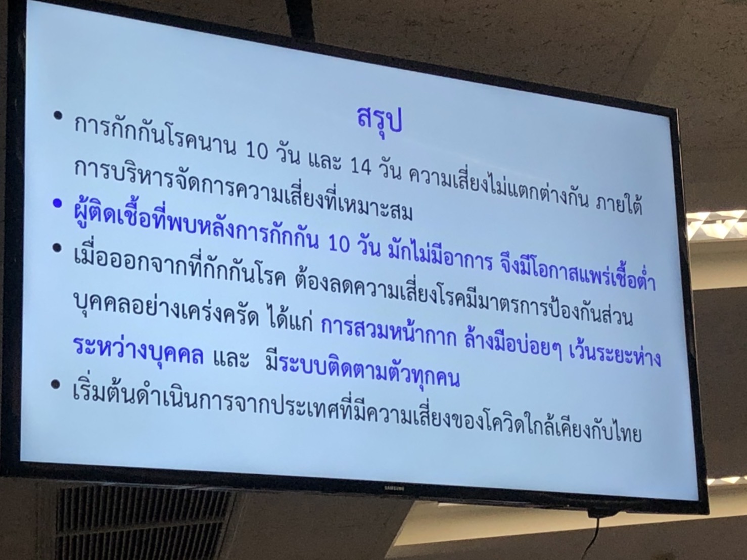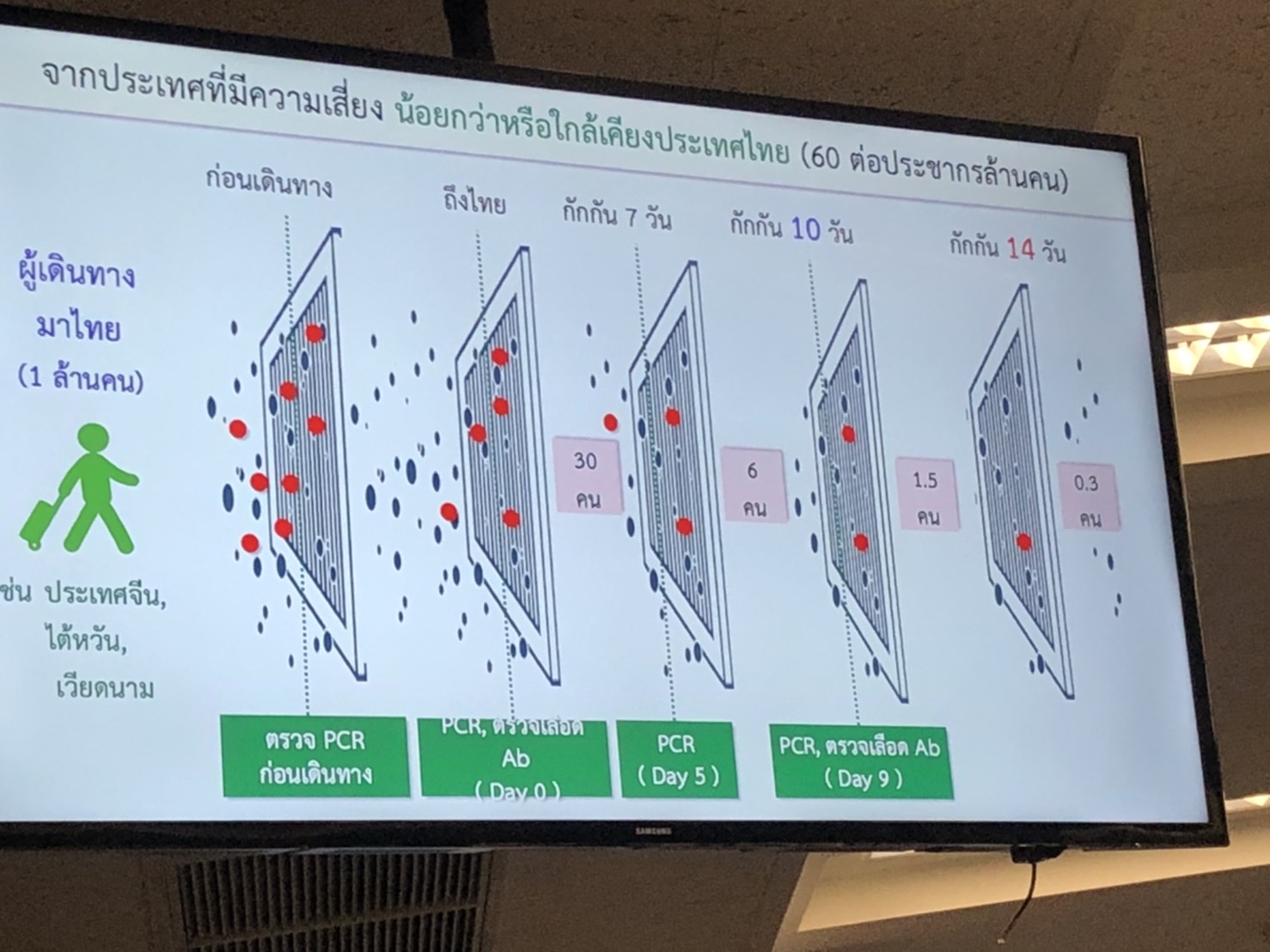 สธ.6 พ.ย.-อธิบดีกรมควบคุมโรค แจงลดกักตัว 10 วัน ทำในกลุ่มประเทศเสี่ยงต่ำกว่าไทยหรือเทียบเท่า หากพบป่วยเกิน 50 คนต้องปรับกลับมา 14 วัน พร้อมแจงเกณฑ์เทียบเคียงประเทศเสี่ยงต่ำ เสี่ยงสูง ขณะที่ผลสอบสวนโรค หญิงฝรั่งเศสคาดติดจากพื้นที่ส่วนกลาง