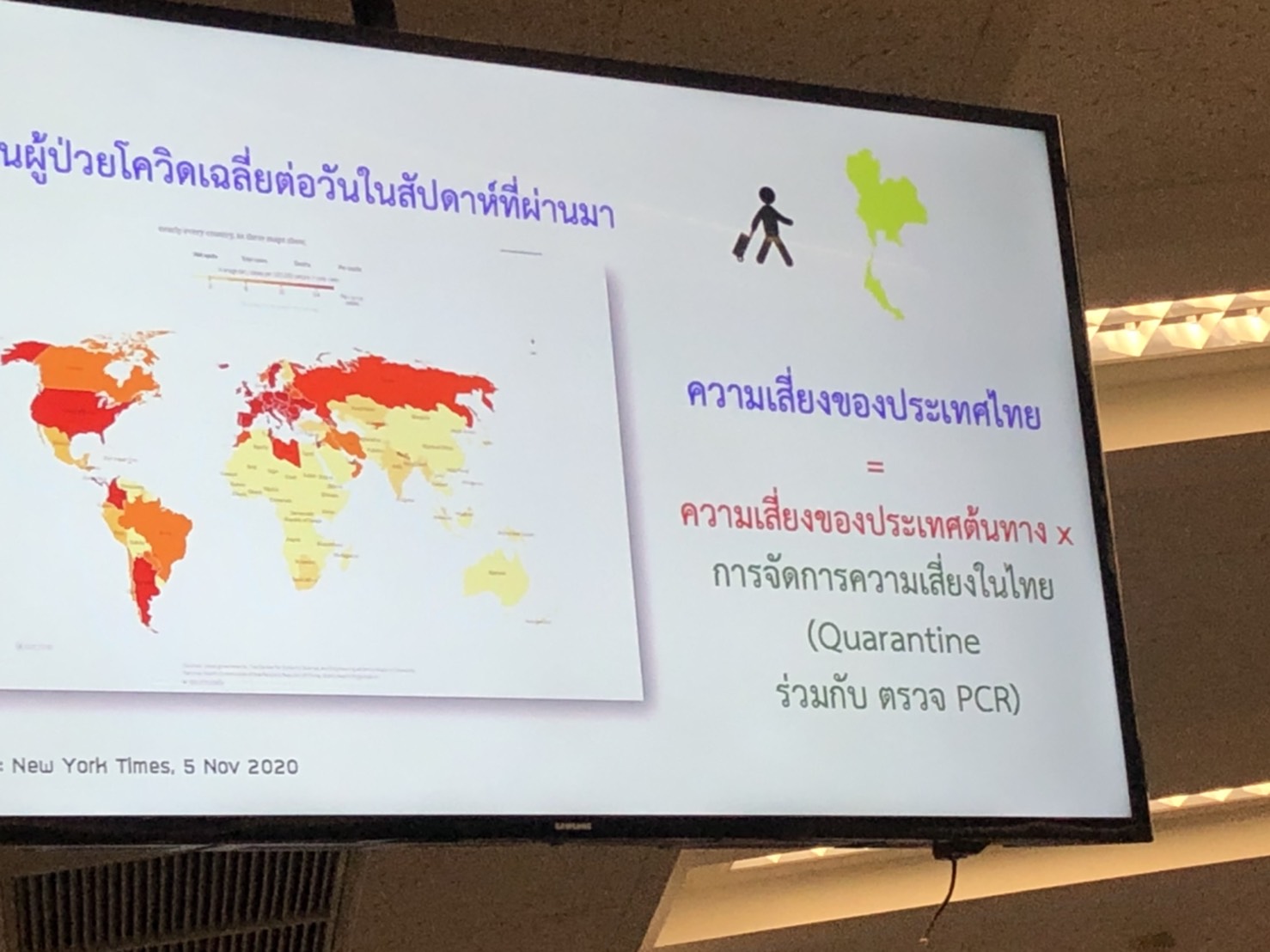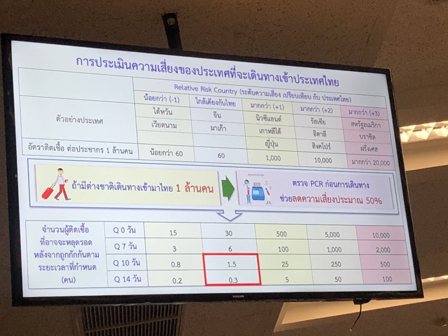 ส่วนประเทศที่มีอัตราเสี่ยงเท่ากับไทย มีอัตราป่วย 60 คน ต่อ1ล้านประชากร ได้แก่ จีน มาเก๊า ส่วนกลุ่มประเทศที่มีอัตราติดเชื้อมากกว่าไทย แบบ +1พบผู้ป่วยได้ 1,000 คนต่อ 1 ล้านประชากรได้แก่ นิวซีแลนด์ เกาหลีใต้ และญี่ปุ่น ขณะที่กลุ่มประเทศ ที่มีอัตราการติดเชื้อมากกว่าไทยแบบ +2 และมีอัตราป่วย 10,000 คนต่อ 1 ล้านประชากร ได้แก่ รัสเซีย อิตาลี และสิงคโปร์ ส่วนประเทศที่มีอัตราการติดเชื้อมากกว่าไทย แบบ+3 และมีอัตราป่วยติดเชื้อมากกว่า 20,000 คนต่อ1 ล้านประชากรได้แก่ สหรัฐ บราซิล และฝรั่งเศส