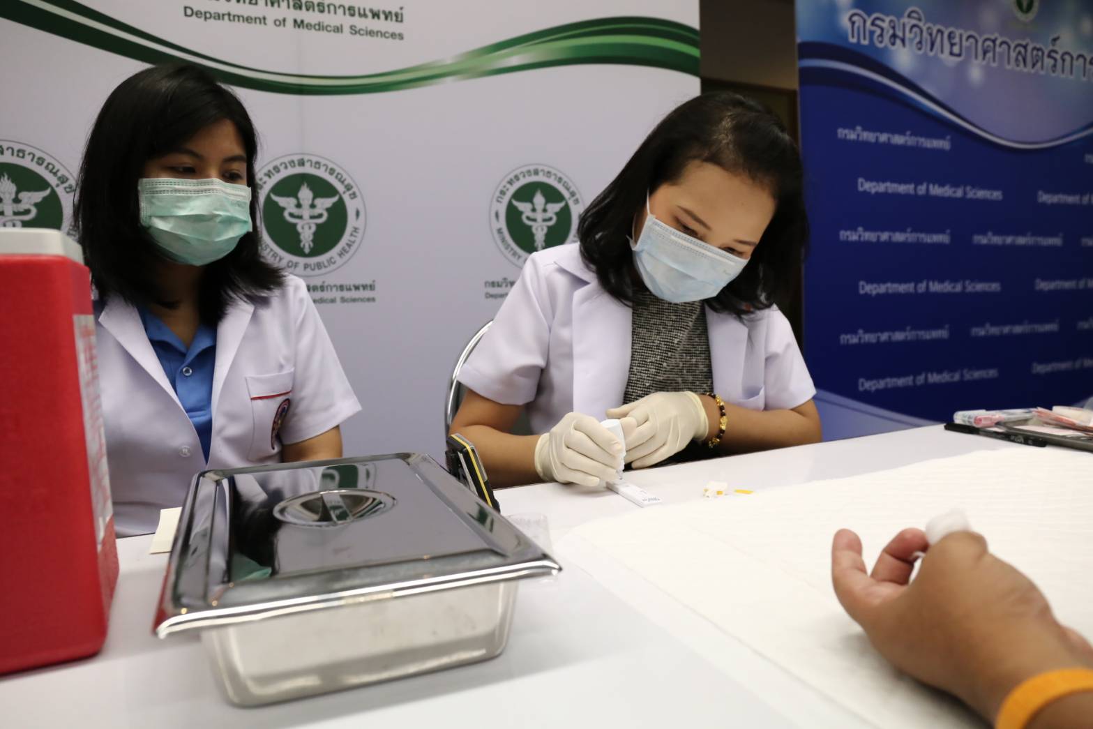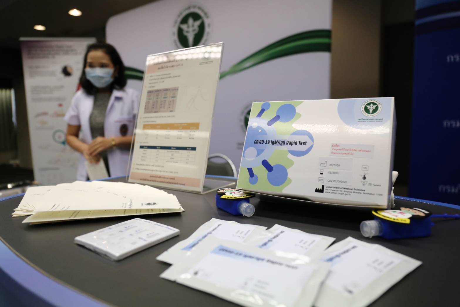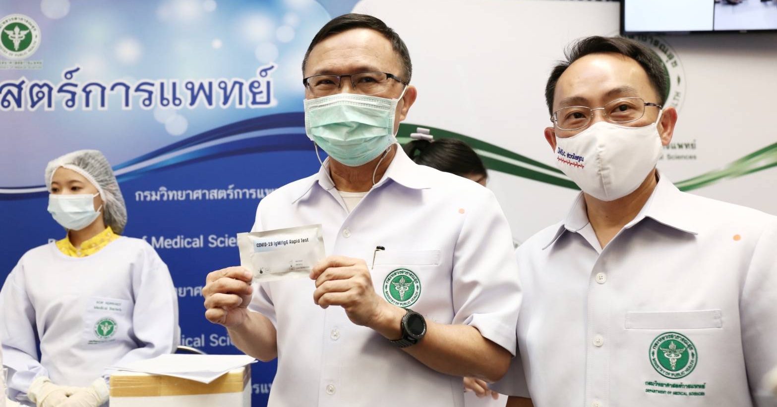 นพ.ศุภกิจ ศิริลักษณ์ รักษาราชการแทนอธิบดีกรมวิทยาศาสตร์การแพทย์ กล่าวว่า ล่าสุด กรมวิทย์ฯได้พัฒนาชุดตรวจหาแอนติบอดีต่อเชื้อ SARS-CoV-2 เป็นผู้ผลิตแรกของประเทศไทยที่ผ่านการทดสอบว่ามีความไว ความจำเพาะและความแม่นยำต่อโรคโควิด-19 มากกว่าร้อยละ 90 โดยขณะนี้อยู่ระหว่างขอขึ้นทะเบียนกับสำนักงานคณะกรรมการอาหารและยา(อย.) ซึ่งคาดว่าจะใช้เวลาประมาณ 1เดือน หากผ่านกรมวิทย์ฯจะผลิตเพื่อนำ มาใช้ในการสุ่มตรวจหาภูมิคุ้มกันคนไทย 60,000 คนทั่วประเทศ กระจายไปใน 12เขตสุขภาพ พื้นที่ละ 5,000 ชุด ใช้ตรวจได้ 5,000 คน เพื่อสรุปข้อมูลความชุกของโรคโควิด-19 ของไทย หากผลออกมาความชุกต่ำแสดงว่าต้องคงการ์ดสูงต่อไป เพราะแสดงว่าอัตราติดยังต่ำ ซึ่งกรมวิทย์ฯ มีกำลังการผลิตชุดตรวจหาแอนติบอดีต่อเชื้อ SARS-CoV-2ได้ 3,000 เทสต่อสัปดาห์ นอกจากนี้ยังพร้อมถ่ายทอดเทคโนโลยีให้เอกชนที่สนใจ นำไปผลิตเพื่อจำหน่ายได้ ซึ่งการผลิตได้เองในประเทศทำให้ต้นทุนต่ำเพียงกว่า 150 บาทต่อเทสเท่านั้น ขณะที่หากนำเข้าจากต่างประเทศ มีราคาอยู่ที่ 300-500 บาท