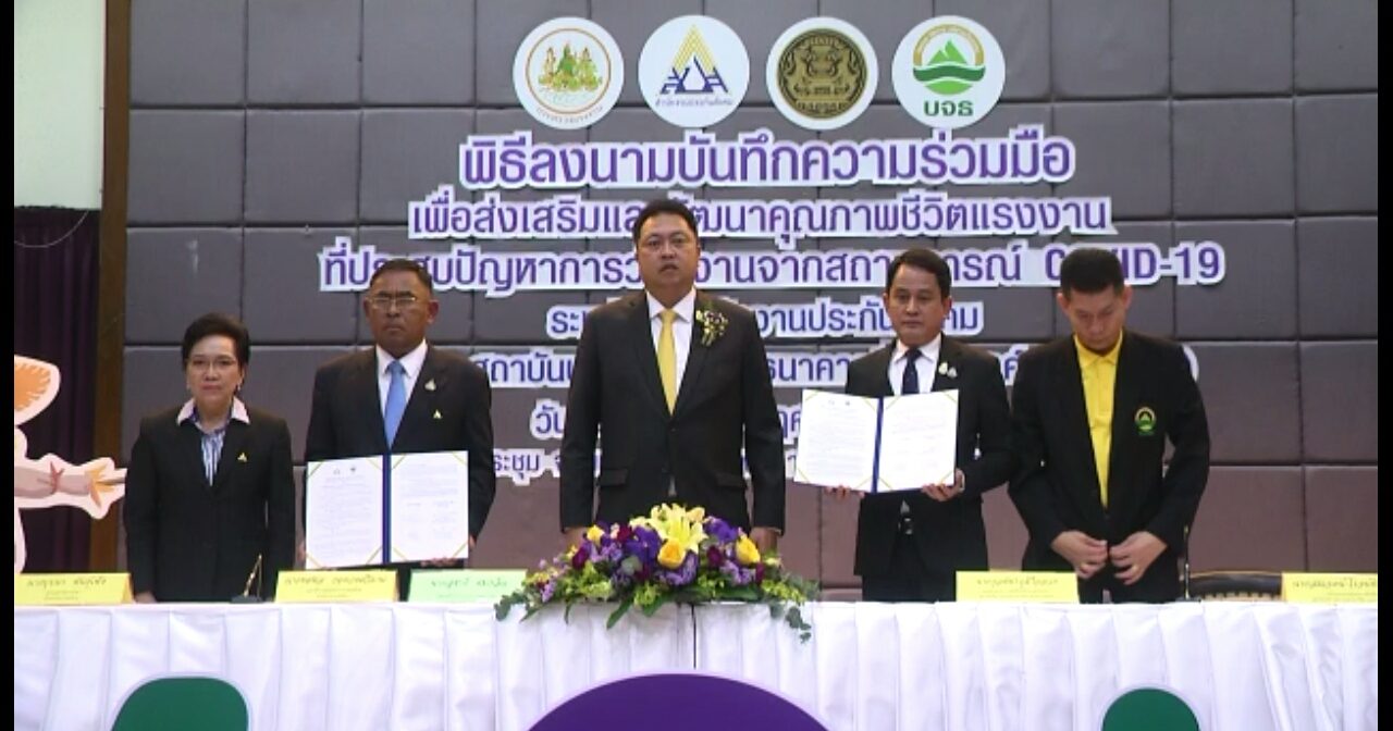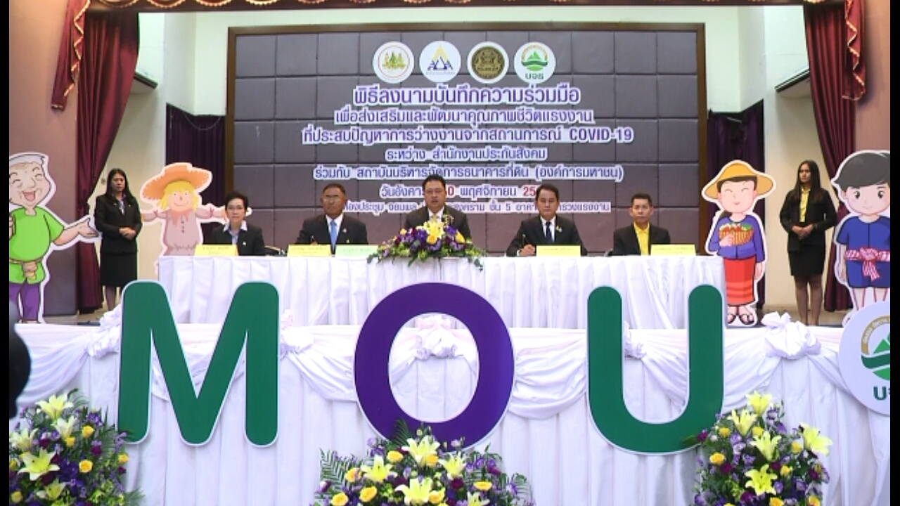 นายสุชาติ ชมกลิ่น รัฐมนตรีว่าการกระทรวงแรงงาน เป็นประธานในพิธีลงนามบันทึกความร่วมมือระหว่างสำนักงานประกันสังคม กับสถาบันบริหารจัดการ ธนาคารที่ดิน (องค์การมหาชน) เพื่อร่วมส่งเสริมและพัฒนาคุณภาพชีวิตแรงงานที่ประสบปัญหาการว่างงานจากสถานการณ์โควิด-19 โดยมีนายทศพล กฤตวงศ์วิมาน เลขาธิการสำนักงานประกันสังคมลงนามบันทึกข้อตกลง ร่วมกับ พล.ต.อ.เฉลิมเกียรติ ศรีวรขาน ประธานคณะกรรมการสถาบันบริหารจัดการธนาคารที่ดิน พร้อมด้วยนางธิวัลรัตน์ อังกินันทน์ ที่ปรึกษารัฐมนตรีว่าการกระทรวงแรงงาน นายสุเทพ ชิตยวงษ์ เลขานุการรัฐมนตรีว่าการกระทรวงแรงงาน