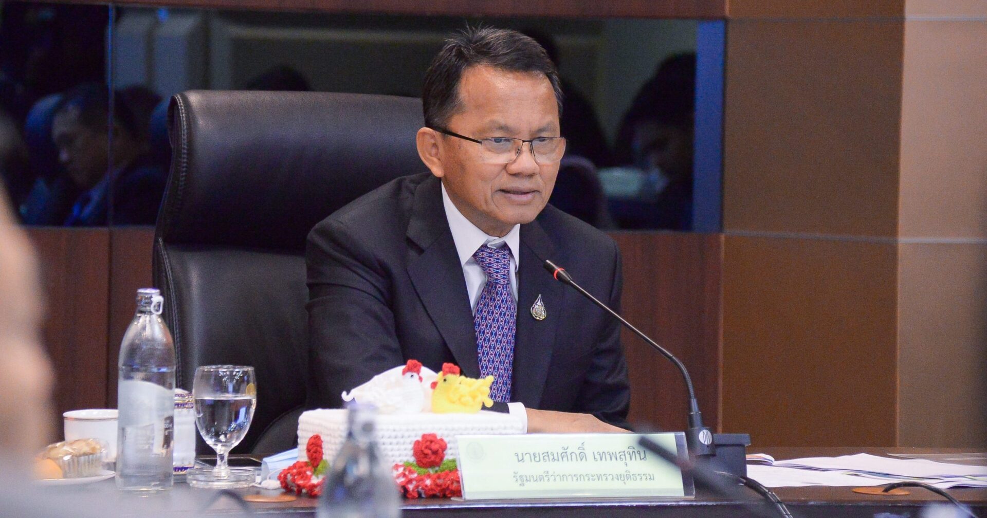 นายสมศักดิ์ เทพสุทิน รัฐมนตรีว่าการกระทรวงยุติธรรม เป็นประธานการประชุมผู้บริหารกระทรวงยุติธรรม โดยมี ศาสตราจารย์พิเศษวิศิษฏ์ วิศิษฏ์สรอรรถ ปลัดกระทรวงยุติธรรม ว่าที่ ร.ต.ธนกฤต จิตอารีย์รัตน์ เลขานุการ รมว.ยุติธรรม นายธนวัชร นิติกาญจนา ที่ปรึกษา รมว.ยุติธรรม นายสามารถ เจนชัยจิตวานิช ผู้ช่วย รมว.ยุติธรรม อธิบดีทุกกรมในกระทรวงยุติธรรม และข้าราชการส่วนต่างๆ ร่วมประชุมเมื่อวันที่ 11 พ.ย.63