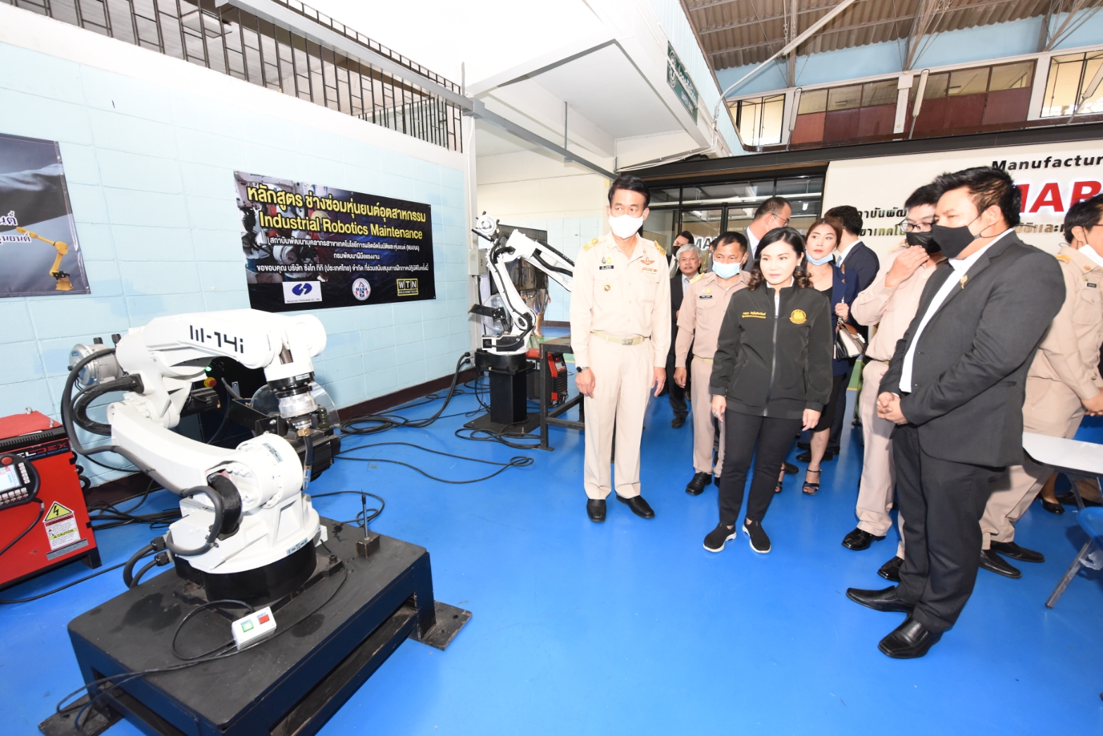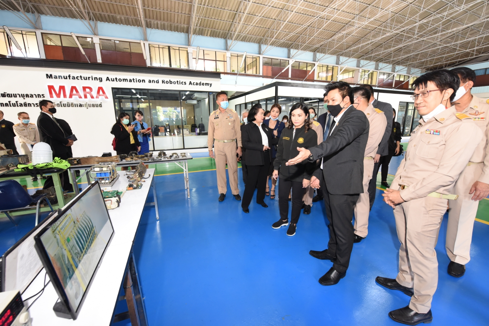 รมช. แรงงาน กล่าวต่อว่า การตรวจเยี่ยมการฝึกของสถาบันพัฒนาฝีมือแรงงาน 3 ชลบุรี (สพร.3 ชลบุรี) และสถาบันพัฒนาบุคลากรสาขาเทคโนโลยีการผลิตอัตโนมัติและหุ่นยนต์ (MARA) เนื่องจากมีการฝึกอบรมที่น่าสนใจ สามารถตอบสนองความต้องการของสถานประกอบกิจการในพื้นที่ได้ มีหลักสูตรการฝึกที่ทันต่อเทคโนโลยี โดยเฉพาะการฝึกด้านอัตโนมัติและหุ่นยนต์ จากการรายงานข้อมูล พบว่า ในปีงบประมาณ พ.ศ. 2564 สพร. 3 ชลบุรี มีเป้าหมายพัฒนาฝีมือแรงงานในพื้นที่จำนวน 3,620 คน และส่งเสริมสถานประกอบกิจการดำเนินการอีก 308,000 คน ตาม พ.ร.บ.ส่งเสริมการพัฒนาฝีมือแรงงาน พ.ศ. 2545 ในด้านการฝึกอบรม มีทั้งการยกระดับผีมือแรงงาน การพัฒนาศักยภาพแรงงานเพื่อรองรับการจ่ายค่าจ้างมาตรฐานฝีมือ และการทดสอบมาตรฐานฝีมือแรงงานแห่งชาติ การฝึกอบรมมีทั้งการฝึกประเภท hard skill และsoft skill เพื่อรองรับอุตสาหกรรมเป้าหมาย อาทิ ยานยนต์สมัยใหม่ อิเล็กทรอนิกส์อัจฉริยะ การท่องเที่ยวกลุ่มรายได้ดีและการท่องเที่ยวเชิงสุขภาพ การบินและโลจิสติกส์ ดิจิทัล