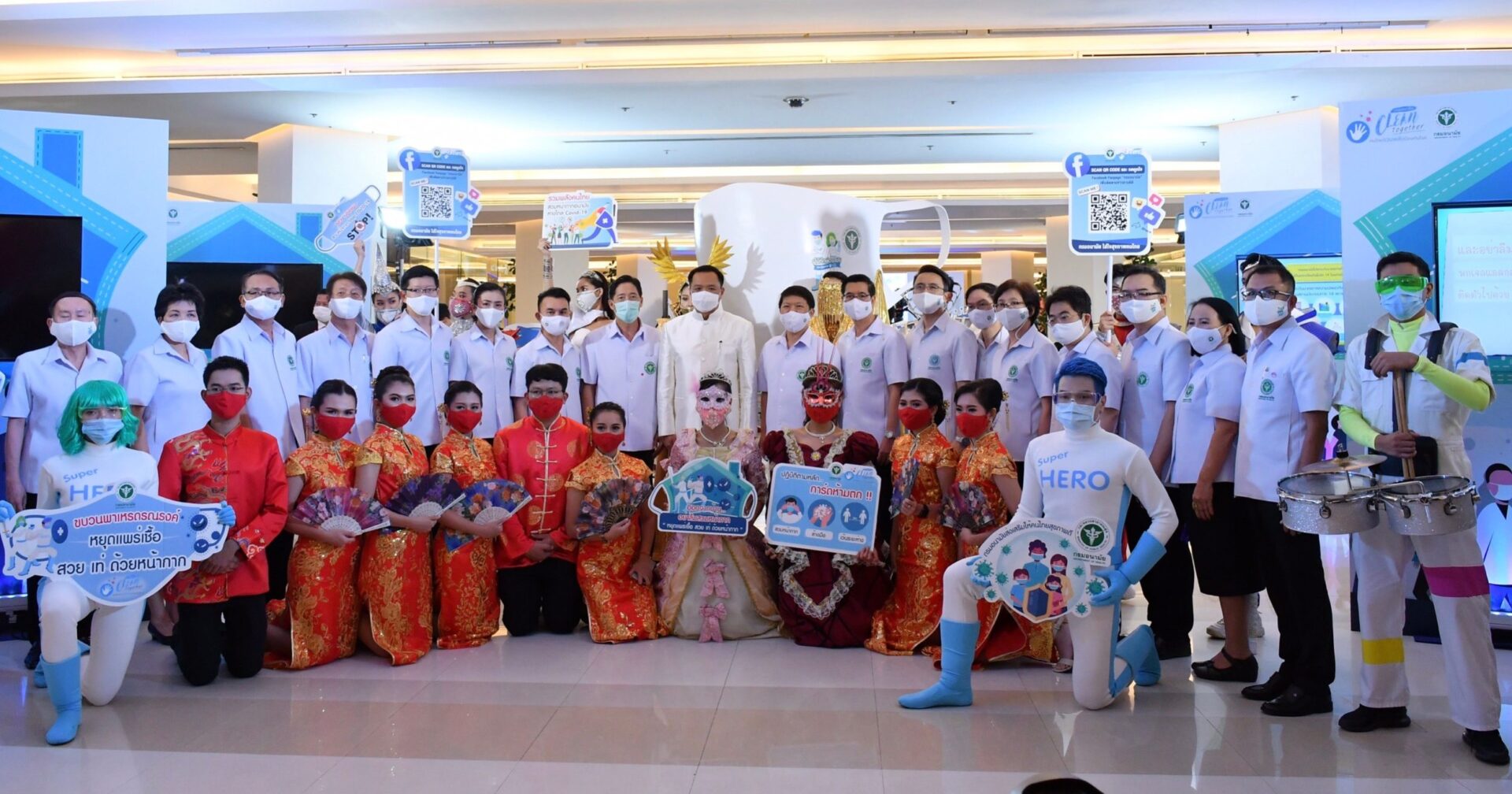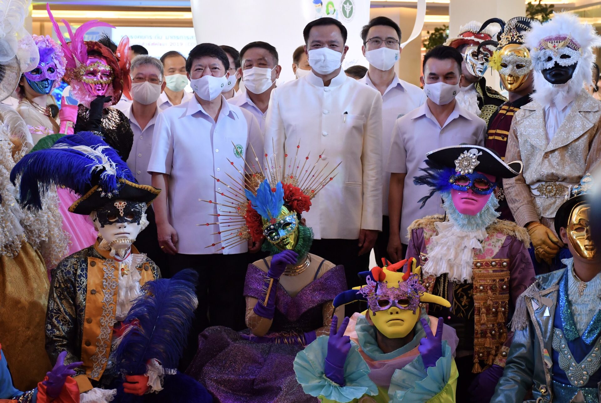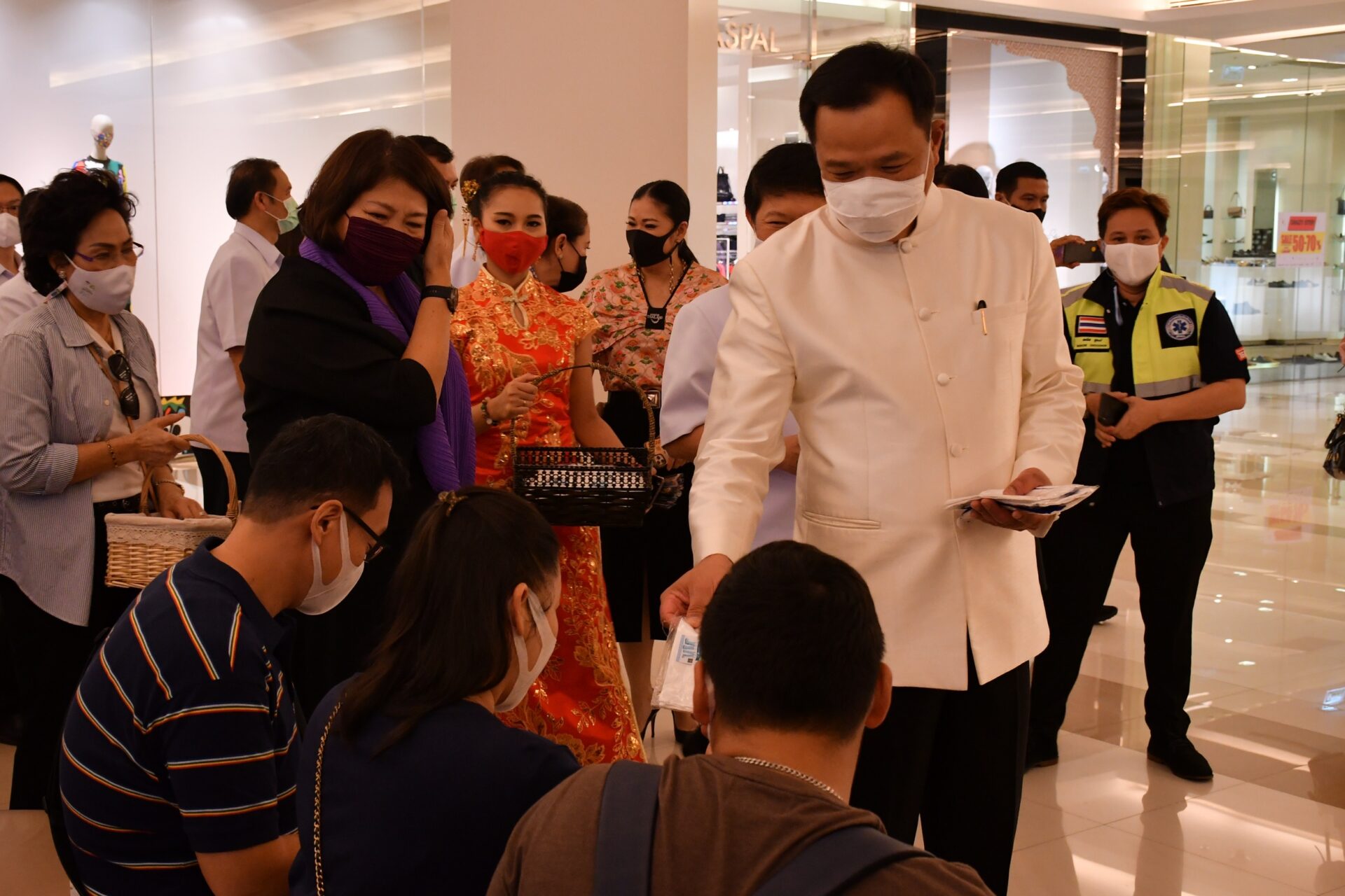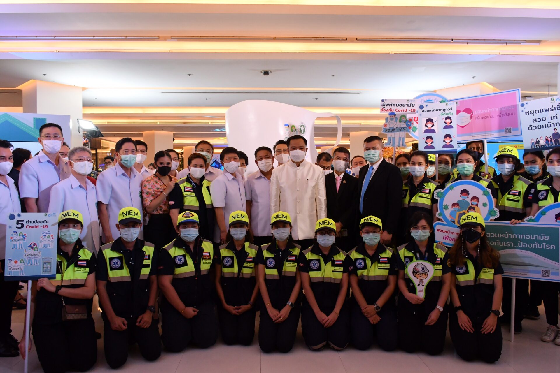 วันนี้ (17 พ.ย.) ที่ศูนย์การค้าสยามพารากอน นายอนุทิน ชาญวีรกูล รองนายกรัฐมนตรีและรัฐมนตรีว่าการกระทรวงสาธารณสุข เป็นประธานเปิดกิจกรรมรณรงค์ยกระดับมาตรการสวมหน้ากากป้องกันโรคไวรัสโคโรนา 2019 (COVID19) โดยมีนพ.เกียรติภูมิ วงศ์รจิต ปลัดกระทรวงสาธารณสุข นพ.สุวรรณชัย วัฒนายิ่งเจริญชัย รักษาราชการแทนอธิบดีกรมอนามัย และผู้บริหารกระทรวงสาธารณสุขเข้าร่วม พร้อมลงพื้นที่รณรงค์สื่อสารให้ประชาชนภายในบริเวณศูนย์การค้าสวมหน้ากากอนามัยหรือหน้ากากผ้าตลอดเวลาเมื่ออยู่ในพื้นที่สาธารณะ