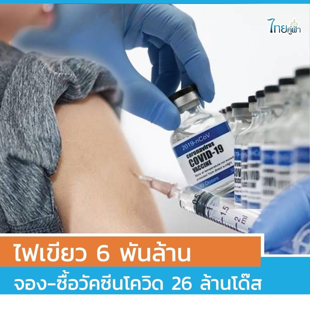 กรุงเทพฯ 18 พ.ย.-เพจไทยคู่ฟ้า เผยแพร่ข่าวดี ครม.ไฟเขียว 6 พันล้านบาท จองซื้อ วัคซีนโควิด-19 จำนวน 26 ล้านโดส