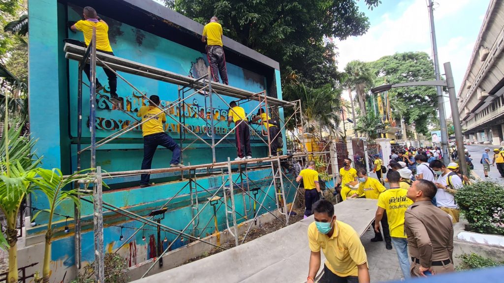 ภาคีประชาชนปกป้องเทิดทูนสถาบันฯ และเครือข่าย นำอุปกรณ์ทั้งไม้กวาด แปรงลวด น้ำมันสน ผ้า และถุงดำ อุปกรณ์ ล้างทำความสะอาดสีบริเวณด้านหน้าสำนักงานตำรวจแห่งชาติ ยาวต่อเนื่องถึงแยกราชประสงค์ รวมถึงหน้าวัดปทุมวนาราม ภายใต้กิจกรรมลบสีเก็บขยะ หรือ Big cleaning Day เพื่อล้างทำความสะอาดลบถ้อยคำหยาบคายบริเวณป้ายสำนักงานตำรวจแห่งชาติ รั้วและกำแพง พร้อมทาสีใหม่