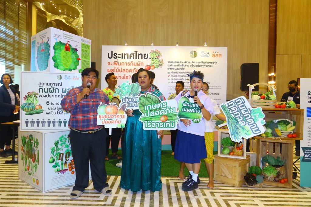 ดร.สิรินทร์ยา พูลเกิด อาจารย์ประจำสถาบันวิจัยประชากรและสังคม มหาวิทยาลัยมหิดล กล่าวว่า จากผลสำรวจสถานการณ์การกินผักและผลไม้ในประเทศไทย ปี 2562 พบว่ามีคนไทยเพียงร้อยละ 37.5 หรือประมาณ 4 ใน 10 คน กินผักผลไม้เพียงพอตามเกณฑ์แนะนำในแต่ละวัน ขณะที่เด็กวัยเรียนเพียง 2-3 คน จาก 10 คนเท่านั้นที่กินผักและผลไม้เพียงพอ นอกจากนี้พบว่ากลุ่มวัยผู้ใหญ่ กลุ่มคนโสด กลุ่มคนที่มีการศึกษาระดับมัธยมศึกษาหรือต่ำกว่า พนักงานเอกชน และกลุ่มที่มีรายได้ไม่เกิน 10,000 บาทต่อเดือน ยังเสี่ยงต่อการกินผักผลไม้ไม่เพียงพอมากกว่ากลุ่มอื่น ดังนั้นหากทุกภาคส่วนร่วมกันผลักดันทำให้ผักผลไม้ปลอดภัยและเข้าถึงได้ จะช่วยให้คนไทยกินผักผลไม้ได้เพียงพอเพิ่มขึ้น ซึ่งจะส่งผลดีต่อสุขภาพและคุณภาพชีวิตของคนไทยทุกกลุ่มวัย