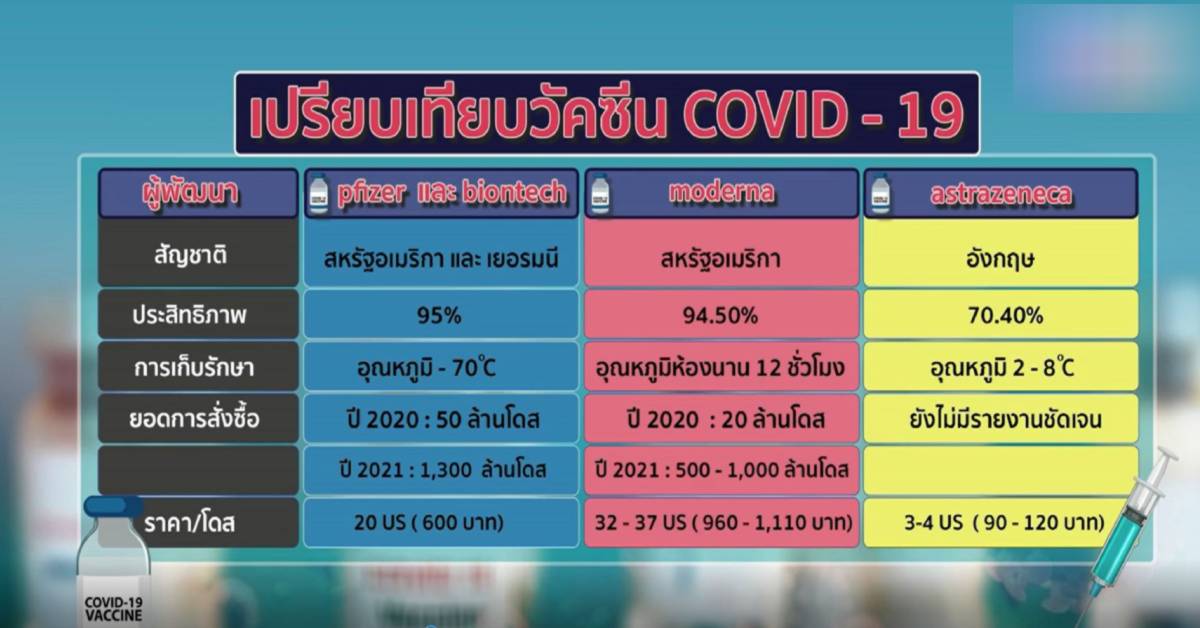 กทม. 25 พ.ย.-เปรียบเทียบการพัฒนาวัคซีนโควิด-19 ของ 3 กลุ่มบริษัท ที่ขณะนี้ทดลองมีความคืบหน้าอย่างต่อเนื่อง ได้ผลดี