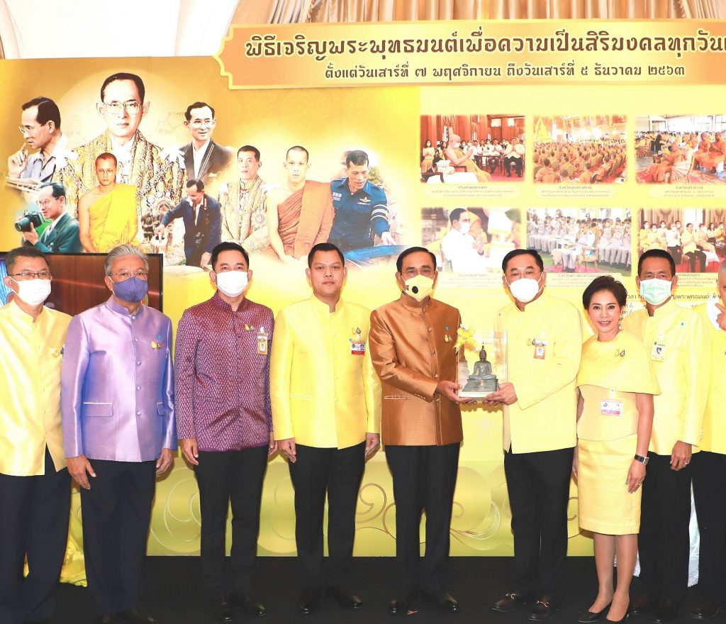 วันนี้ (1 ธ.ค.) เวลา 08.30 น. ณ ตึกสันติไมตรี ทำเนียบรัฐบาล ก่อนการประชุมคณะรัฐมนตรี พลเอก ประยุทธ์ จันทร์โอชา นายกรัฐมนตรี ได้เยี่ยมชมกิจกรรมการประชาสัมพันธ์เพื่อเชิญชวนประชาชนร่วมพิธีเจริญพระพุทธมนต์เพื่อความเป็นสิริมงคลทุกวันเสาร์ ซึ่งเป็นไปตามมติมหาเถรสมาคม ที่เห็นชอบให้สำนักงานพระพุทธศาสนาแห่งชาติจัดขึ้น เพื่อเสริมความเป็นสิริมงคลของประเทศ ภายหลังจากที่ประเทศไทยได้รับผลกระทบจากภัยธรรมชาติและโรคระบาดอย่างต่อเนื่อง ผู้คนมีความขัดแย้งทางด้านความคิด เกิดความแตกแยกในสังคม และเนื่องในโอกาสวันคล้ายวันพระราชสมภพ พระบาทสมเด็จพระบรมชนกาธิเบศร มหาภูมิพลอดุลยเดชมหาราช บรมนาถบพิตร ซึ่งเป็นวันชาติและวันพ่อแห่งชาติ โดยมีนายอนุชา นาคาศัย รัฐมนตรีประจำสำนักนายกรัฐมนตรี นางสาวณัฐธ์ภัสส์ ยงใจยุทธ ที่ปรึกษารัฐมนตรีประจำสำนักนายกรัฐมนตรี นายธนกร วังบุญคงชนะ เลขานุการรัฐมนตรีประจำสำนักนายกรัฐมนตรี นายณรงค์ ทรงอารมณ์ ผู้อำนวยการสำนักงานพระพุทธศาสนาแห่งชาติ รวมถึงศิลปินดารา อาทิ คุณอุ้ย รวิวรรณ จินดา และ เก่ง ธชย ร่วมต้อนรับ