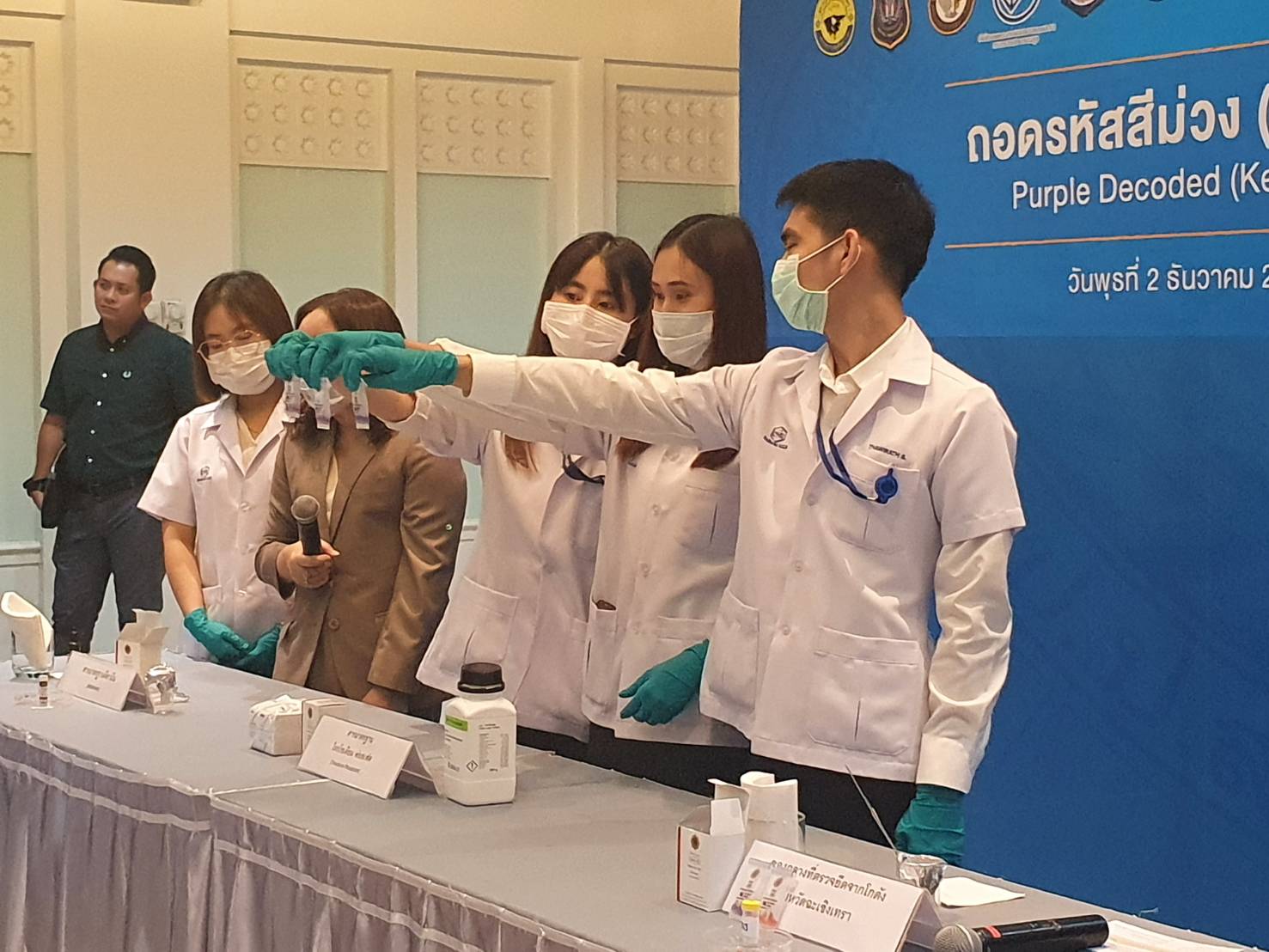 พ.ต.ท.ไพศิษฎ์ สังคหะพงศ์ รองเลขาธิการคณะกรรมการป้องกันและปราบปรามยาเสพติด ( ป.ป.ส. ) เปิดการสัมมนา ‘”ถอดรหัสสีม่วง” (คีตามีน) เพื่อสร้างความเข้าใจในการตรวจพิสูจน์สารตั้งต้นและเคมีภัณฑ์ทั้งในห้องปฏิบัติการและภาคสนาม มีการสาธิตเบื้องต้นในการตรวจสอบเคตามีน โดยใช้ชุดทดสอบเบื้องต้น ตรวจสาร3ชนิดทั้งสารมาตรฐานคีตามีน ไตรโซเดียมฟอสเฟต และของกลางที่ยึดได้จากโกดังจังหวัดฉะเชิงเทรา โดยผลทดสอบ 3สาร ให้สีม่วงเหมือนกัน ซึ่งพบได้ว่า มีสารเคมีหลายชนิดที่ทดสอบได้สารสีม่วง
