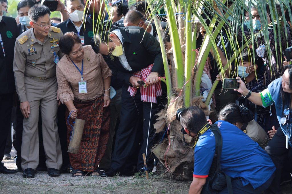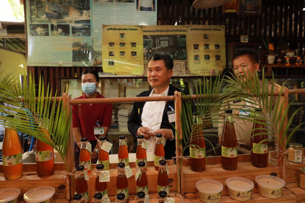 พล.อ.ประยุทธ์ จันทร์โอชา นายกรัฐมนตรี กล่าวว่า ขอขอบคุณทุกคนที่มาให้การต้อนรับในพื้นที่ ผมเดินเข้ามาในพื้นที่แล้วรู้สึกมีความสุขกับบรรยากาศบ้านสวนริมคลองและได้พบปะพี่น้องประชาชนและได้เห็นพี่น้องประชาชนในพื้นที่มีความสุข หลังจากผมได้รับฟังคำบรรยายและรายงานสรุปผลการดำเนินกิจกรรมของกลุ่มวิสาหกิจชุมชนแล้วรู้สึกชื่นชมที่รู้จักการนำนโยบายของรัฐบาลมาขับเคลื่อนในพื้นที่ชุมชน เราต้องช่วยกันขับเคลื่อนรวมไทยสร้างชาติไปด้วยกัน พร้อมทั้งให้กำลังใจกับกลุ่มวิสาหกิจชุมชนในการที่จะดำเนินกิจกรรมพื้นที่ชุมชนให้สามารถสร้างรายได้ให้กับชุมชน และขอฝากส่วนงานราชการที่เกี่ยวข้องให้การสนับสนุนในส่วนมาตรฐานผลิตภัณฑ์น้ำตาลมะพร้าว (ไซรัป) พร้อมการขึ้นทะเบียนผลิตภัณฑ์น้ำตาลมะพร้าว นับเป็นผลิตภัณฑ์ชุมชนและผลิตภัณฑ์ OTOP ที่เป็นความภาคภูมิใจของกลุ่มวิสาหกิจชุมชนให้เป็นผลิตภัณฑ์ที่มีมาตรฐาน สามารถนำไปสร้างรายได้ให้ชุมชน ให้จำหน่ายได้ทั้งในประเทศและต่างประเทศต่อไป