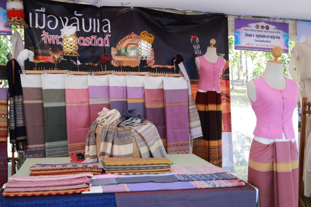 1) นิทรรศการจัดแสดงและจำหน่ายผลิตภัณฑ์ OTOP ประเภทผ้าและเครื่องแต่งกาย จำนวน 13 บูธ โดยมีผลิตภัณฑ์ที่น่าสนใจ อาทิ ผ้าจกแม่แจ่ม โดยร้านอาทิตยาผ้าตีนจก จังหวัดเชียงใหม่ ผ้าลายน้ำไหล โดยกลุ่มสตรีอนุรักษ์ จังหวัดน่าน ผ้าไหมลายยกดอกลายไก่ฟ้าพญาลอ โดย อัญชลีไหมไทย จ.แพร่ ผ้าซิ่นตีนจก โดยกลุ่มทอผ้าบ้านคุ้ม จังหวัดอุตรดิตถ์ ผ้าชาวเขาประยุกต์ โดยบัวคำผ้าไทย จังหวัดเชียงใหม่ ฯลฯ