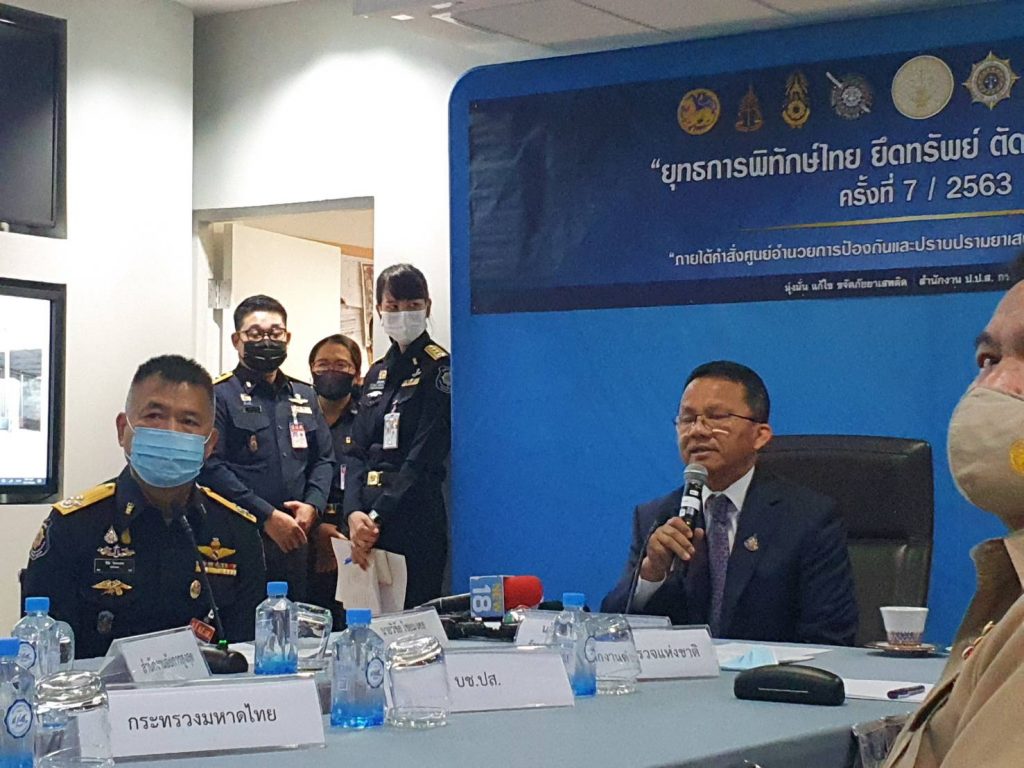 นายสมศักดิ์ เทพสุทิน รัฐมนตรีว่าการกระทรวงยุติธรรม สนธิกำลังสำนักงานคณะกรรมการป้องกันและปราบปรามยาเสพติด (ป.ป.ส.) สำนักงานตำรวจแห่งชาติ สำนักงานอัยการสูงสุด กรมสอบสวนคดีพิเศษ กรมสรรพากร และผู้แทนกระทรวงมหาดไทย แถลงปฏิบัติการยุทธการพิทักษ์ไทย ยึดทรัพย์ ตัดวงจรยาเสพติด ครั้งที่ 7/2563 เข้าขยายผลยึดทรัพย์เช้านี้พร้อมกัน 15 จุดปฏิบัติการใน 6จังหวัด 7 เครือข่าย จุดใหญ่อยู่ที่ จ.ขอนแก่น มากถึง 3 เครือข่าย