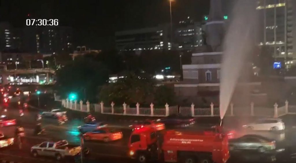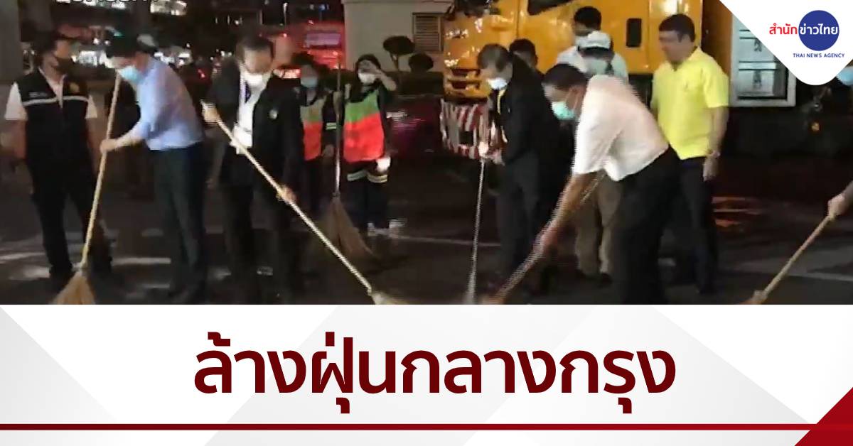 กทม. 18 ธ.ค.-ช่วงกลางดึกที่ผ่านมา บริเวณอนุสาวรีย์ชัยสมรภูมินายนิพนธ์ บุญญามณี รมช.มหาดไทย และ พล.ต.อ.อัศวิน ขวัญเมือง ผู้ว่าฯ กทม. ลงพื้นที่ตรวจเยี่ยมให้กำลังใจเจ้าหน้าที่และมอบนโยบายในปฏิบัติการล้างทำความสะอาดพื้นที่บรรเทาปัญหาฝุ่น PM2.5