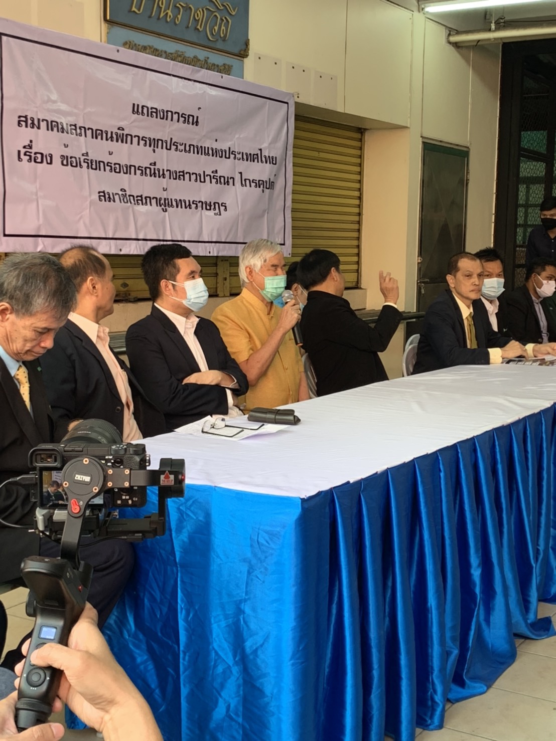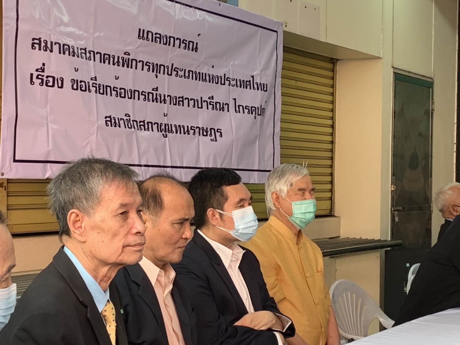 ผู้แทนจากสมาคมสภาคนพิการทุกประเภทแห่งประเทศไทย สมาคมคนตาบอดแห่งประเทศไทย สมาคมคนหูหนวกแห่งประเทศไทย สมาคมคนพิการแห่งประเทศไทย สมาคมผู้ปกครองคนพิการทางสติปัญญาแห่งประเทศไทย สมาคมผู้ปกครองบุคคลออทิซึมไทย สมาคมเพื่อผู้บกพร่องทางจิตแห่งประเทศไทย น.ส.เสาวลักษณ์ ทองกั้วย ที่ปรึกษาสภาคนพิการทุกประเภทแห่งประเทศไทยและคณะกรรมการว่าด้วยสิทธิ คนพิการแห่งสหประชาชาติ ศ.วิริยะ นามศิริพงศ์พันธุ์ ประธานฝ่ายกฎหมายสภาคนพิการทุกประเภทแห่งประเทศไทย ร่วมกันชี้แจงถึงหลักการและเหตุผลในการออกแถลงการณ์ดังกล่าวจากเหตุการณ์ที่ น.ส.ปารีณา ไกรคุปต์ สมาชิกสภาผู้แทนราษฎร ขอแจ้งความดำเนินคดี ต่อคู่กรณีหลายคนจากเหตุการณ์โพสต์ในสื่อโซเชียลประเด็น “ออทิสติก”