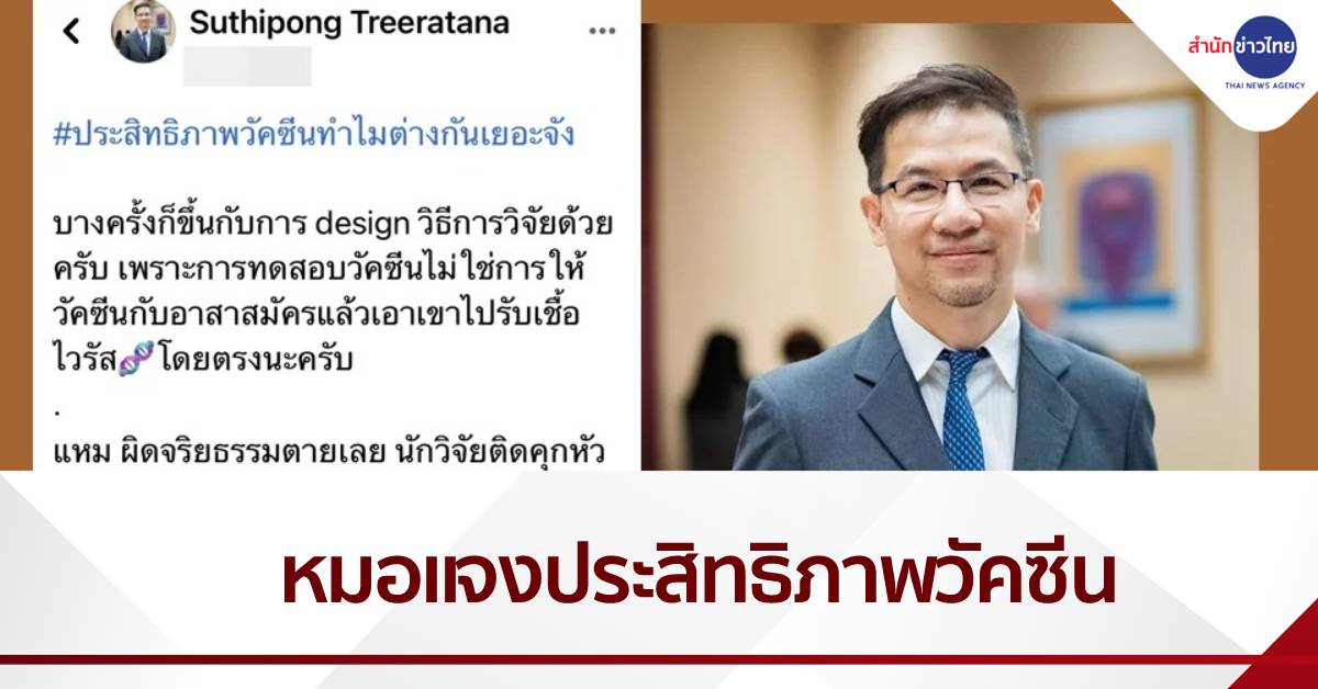 กรุงเทพฯ 13 ม.ค.- หมอดังโพสต์อธิบายเหตุผลทำไมประสิทธิภาพของวัคซีนโควิดจึงมีความแตกต่างกันมาก พร้อมแนะนำไม่ควรตามข่าววัคซีนจาก social media เดี๋ยวมึน