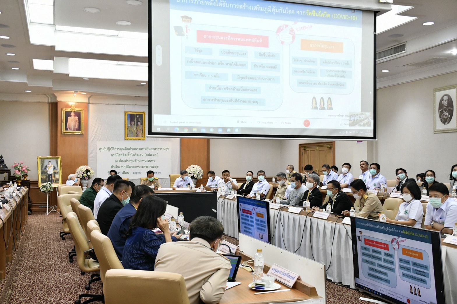 นายอนุทิน ชาญวีรกูล รองนายกรัฐมนตรีและรัฐมนตรีว่าการกระทรวงสาธารณสุข ประชุมคณะอนุกรรมการอำนวยการบริหารจัดการวัคซีนโควิด-19 กับบุคลากรทางการแพทย์ ร่วมกับ นพ.โสภณ เมฆธน ประธานคณะอนุกรรมการอำนวยการให้วัคซีนป้องกันโควิด-19 และผู้บริหารกระทรวงสาธารณสุขร่วมประชุมระบบวิดีโอคอนเฟอเรนซ์ ร่วมกับ รพ. 800 แห่ง เพื่อทำความเข้าใจเกี่ยวกับการให้วัคซีนโควิด