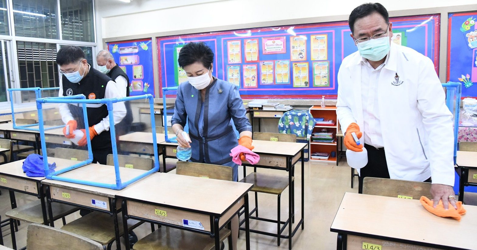 ขณะที่สำนักการศึกษา ได้เตรียมความพร้อมในการเปิดการเรียนการสอนของโรงเรียนในสังกัด กทม.ทั้ง 437 แห่ง พร้อมกำหนดมาตรการในการป้องกันและควบคุมโรคตามแนวทางของรัฐ โดยมาตรการหลักก่อนเปิดภาคเรียน ประกอบด้วย จำกัดผู้ปกครองและบุคคลที่จะเข้ามาในโรงเรียน การคัดกรอง การเน้นย้ำให้สวมหน้ากากอนามัย การรักษาระยะห่าง การล้างมือ การทำความสะอาด การค้นหาและติดตามผู้สัมผัสเสี่ยงในโรงเรียน โดยจะดำเนินการควบคู่ไปกับมาตรการอื่น ๆ อาทิ การเน้นให้นักเรียนได้เรียนในที่โล่ง การจำกัดเวลาในการรับประทานเพื่อให้นักเรียนใช้เวลาถอดหน้ากากอนามัยน้อยที่สุด โต๊ะอาหารต้องมีฉากกั้นและเว้นระยะนักเรียน แม่ครัวและพนักงานล้างจานต้องสวมหน้ากากอนามัย ถุงมือ อาหารที่ปรุงต้องสะอาดและสุกใหม่ จัดให้มีการเหลื่อมเวลาในการพักรับประทานอาหาร การใช้ห้องน้ำจะจัดให้สลับกันตามความเหมาะสมมีการรอคิวและเว้นระยะห่างอย่างชัดเจน และการดูแลให้นักเรียนล้างมือเป็นประจำทุกชั่วโมง