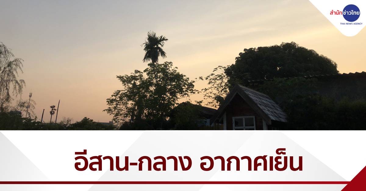 ภาคตะวันออกเฉียงเหนือ อากาศเย็นถึงหนาว กับมีหมอกบางในตอนเช้า อุณหภูมิต่ำสุด 15-19 องศาเซลเซียส อุณหภูมิสูงสุด 28-32 องศาเซลเซียส บริเวณยอดภูอากาศหนาว อุณหภูมิต่ำสุด 8-12 องศาเซลเซียส