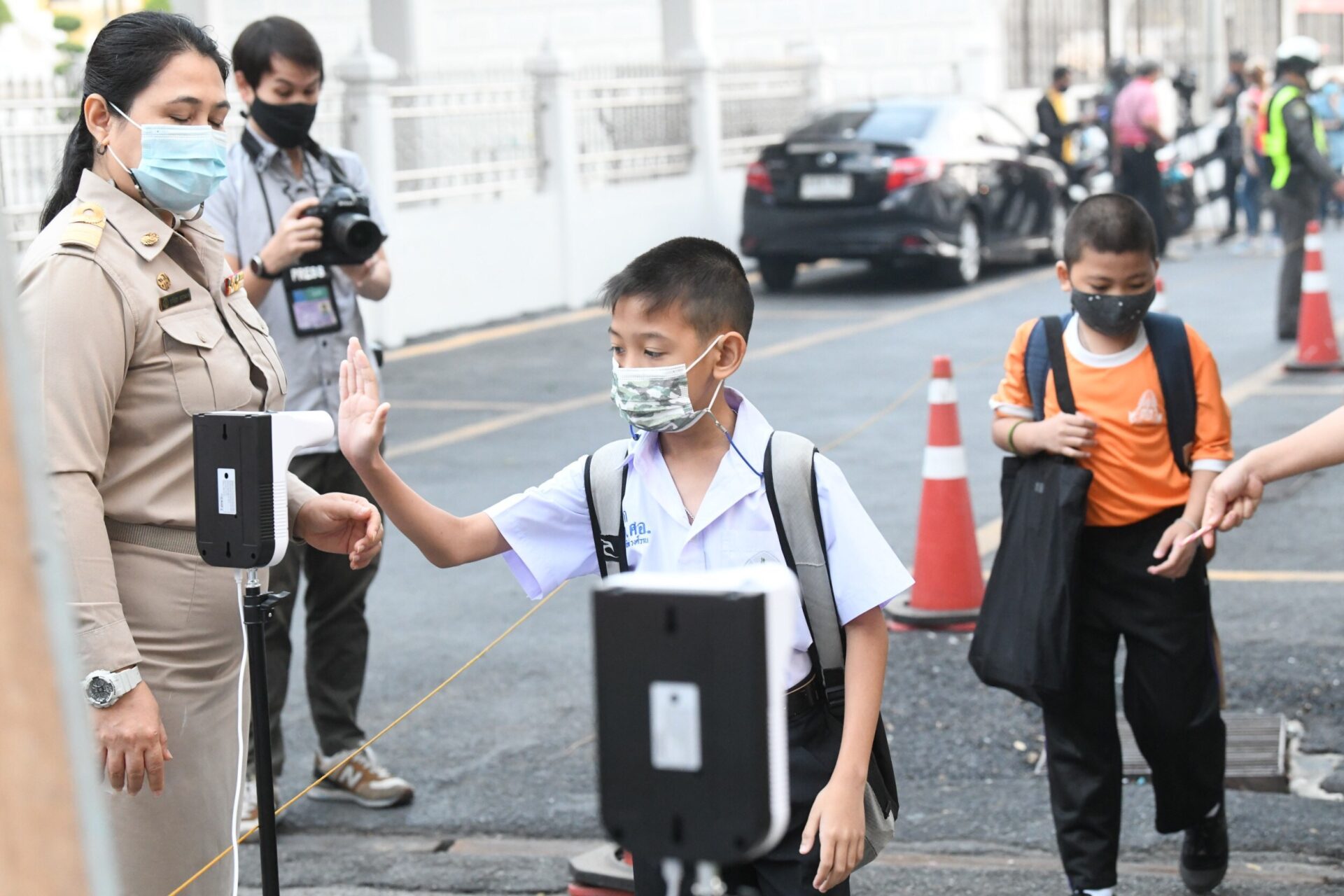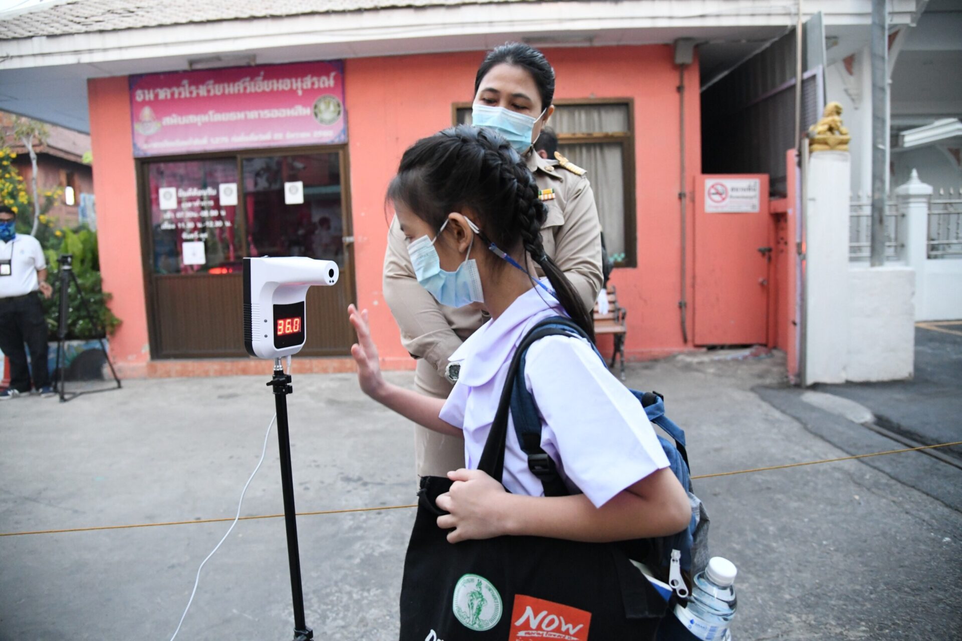 ปลัดกรุงเทพมหานคร กล่าวว่า วันนี้เป็นวันเปิดเรียนวันแรก ซึ่งโรงเรียนมีมาตรการคัดกรองตั้งแต่ก่อนเข้าโรงเรียน ทั้งการตรวจวัดไข้เด็ก แจกเจลแอลกอฮอล์ล้างมือ ให้นักเรียนสวมหน้ากากตลอดเวลา 100% กระตุ้นเตือนให้นักเรียนล้างมือบ่อย ๆ โดยมีจุดล้างมือด้วยเจลแอลกอฮอล์กระจายอยู่ทุกชั้น สำหรับการเรียนการสอนกำหนดให้แต่ละห้องมีนักเรียนไม่เกิน 25 คน หากโรงเรียนไหนพื้นที่ไม่เพียงพอจะใช้วิธีสลับวันกันมาเรียน ซึ่งมีอยู่ 43 โรงเรียนที่สลับวันมาเรียน ในส่วนของเด็กอนุบาลได้จัดระบบการป้องกันทุกส่วน ทั้งฉากกั้น การแบ่งของใช้และของเล่นแยกกัน