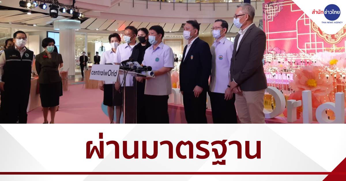 นายแพทย์สุวรรณชัย วัฒนายิ่งเจริญชัย อธิบดีกรมอนามัย กล่าวว่า ศูนย์การค้าเซ็นทรัลเวิลด์ได้มีการปฏิบัติตามคำแนะนำอย่างเคร่งครัด โดยจัดให้มีจุดคัดกรอง ตรวจวัดไข้ของผู้รับบริการและเจ้าหน้าที่ผู้ปฏิบัติงานทุกคน รวมทั้งให้มีการสวมหน้ากากผ้าหรือหน้ากากอนามัย และทำความสะอาดพื้นที่โดยรอบ อุปกรณ์ เครื่องใช้ และจุดที่มีการสัมผัสร่วมกัน โดยเฉพาะราวบันไดเลื่อน จุดชำระเงิน จุดประชาสัมพันธ์ ปุ่มกดลิฟต์ ด้วยน้ำยาทำความสะอาดหรือสารฆ่าเชื้อ อย่างสม่ำเสมอ นอกจากนี้ ยังมีจุดบริการเจลแอลกอฮอล์ไว้ในบริเวณพื้นที่ส่วนกลาง เช่น ประตูทางเข้า-ออก หน้าลิฟต์ ร้านอาหาร ร้านขายสินค้า จุดประชาสัมพันธ์ และดูแลบริเวณห้องน้ำให้สะอาดอยู่เสมอ จึงได้มีการมอบป้าย Thai Stop COVID Plus แก่ศูนย์การค้าเซ็นทรัลเวิลด์ ซึ่งเป็นสถานประกอบการที่ผ่านเกณฑ์สะอาด ถูกสุขลักษณะ ปลอดภัย มั่นใจ ห่างไกลโควิด-19