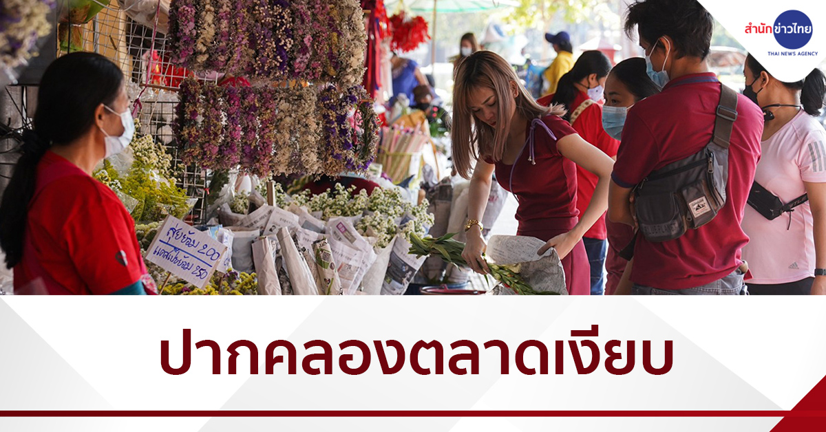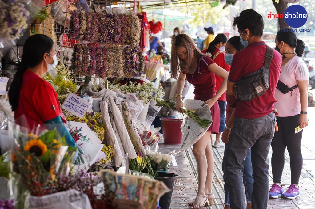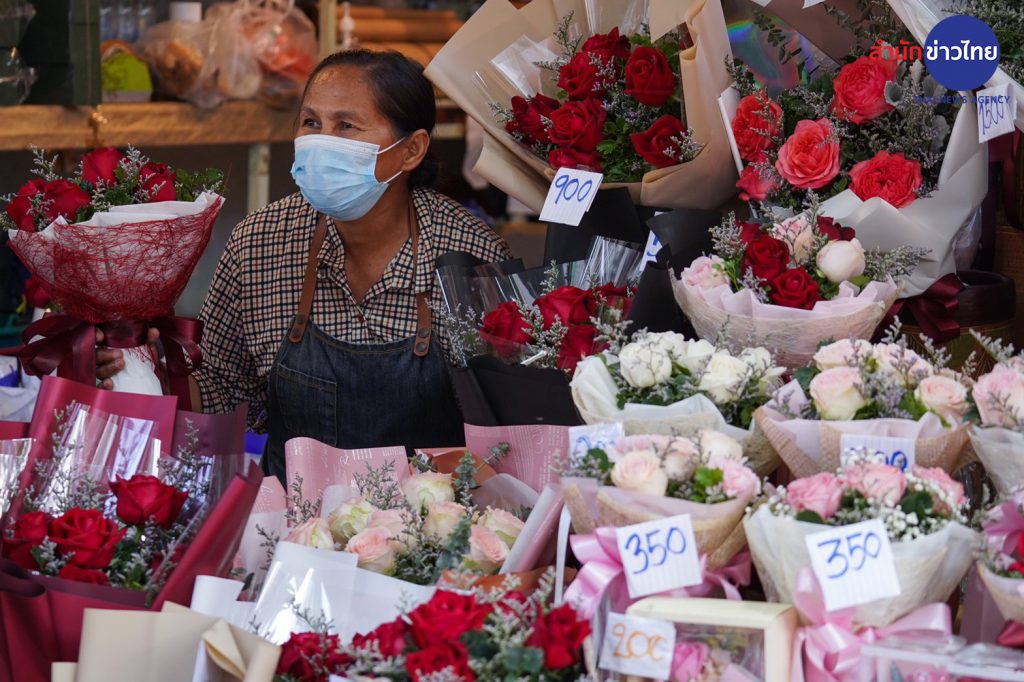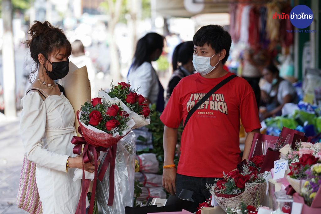 บรรยากาศการซื้อขายดอกไม้ที่ปากคลองตลาด ก่อนวันวาเลนไทน์ 1 วัน ไม่คึกคักเหมือนทุกปี มีประชาชนมาเดินเลือกซื้อดอกไม้บางตา ขณะที่ผู้ค้าส่วนใหญ่ประเมินว่าการซื้อขายดอกไม้ช่วงวาเลนไทน์ปีนี้ ซบเซามากกว่าทุกปี เนื่องจากติดกับวันหยุดยาว อีกทั้งยังมีผลกระทบมาจากสถานการณ์การระบาดของโรคโควิด-19 และการงดจัดกิจกรรมวันแห่งความรัก ผู้ค้าบางรายต้องลดปริมาณการสั่งสตอกดอกไม้ลงกว่า 60% เมื่อเทียบกับปีก่อน เพราะกลัวจะขายไม่ได้