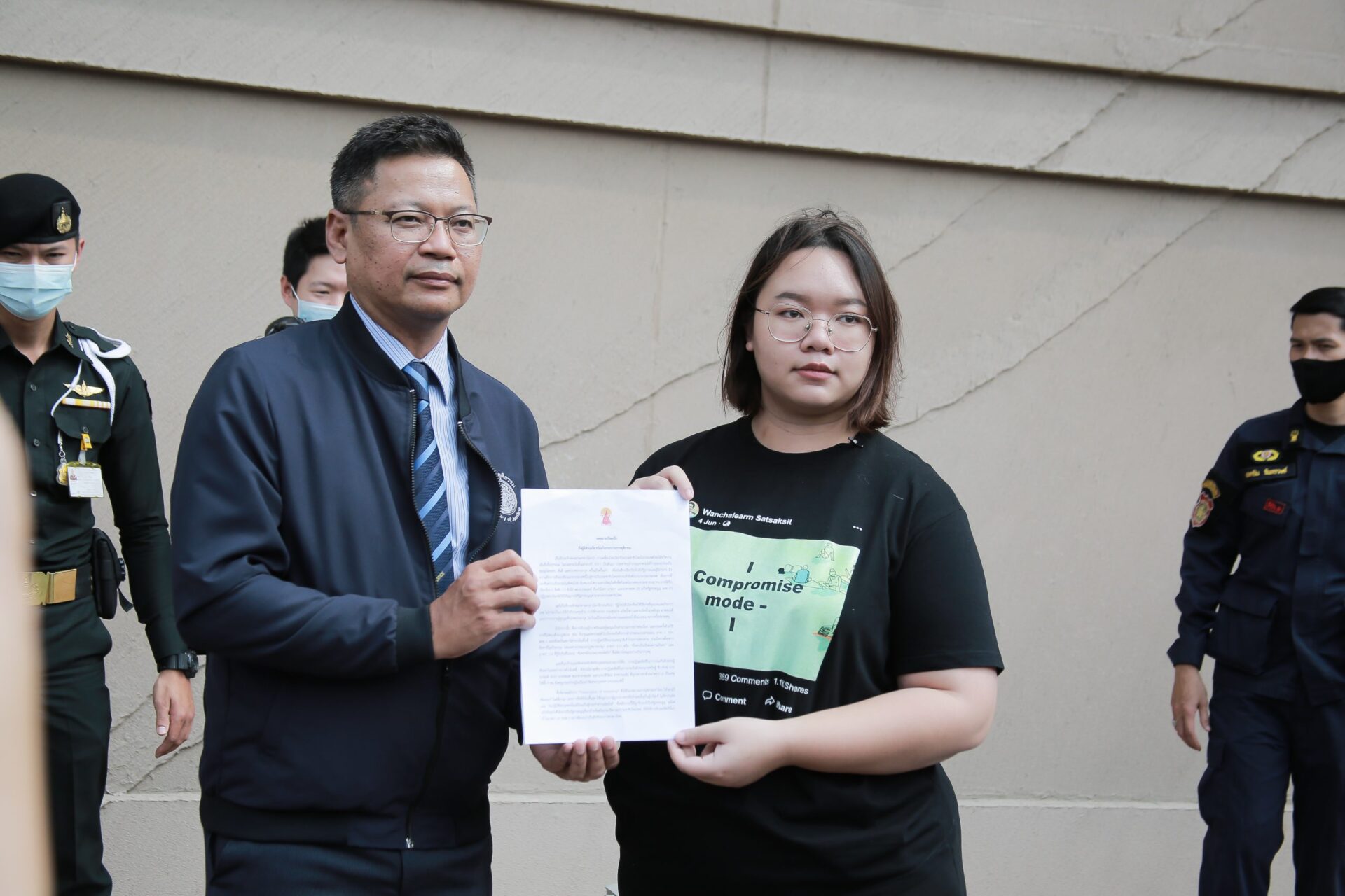 ที่กระทรวงยุติธรรม กลุ่มแนวร่วมธรรมศาสตร์และการชุมนุม นำโดย น.ส.ปนัสยา สิทธิจิรวัฒนกุล หรือ รุ้ง เข้ายื่นหนังสือต่อกระทรวงยุติธรรม โดยมีนายวัลลภ นาคบัว รองปลัดกระทรวงยุติธรรมและโฆษกกระทรวงยุติธรรม เป็นผู้รับหนังสือ โดยทางกลุ่มแนวร่วมธรรมศาสตร์ฯ ได้เรียกร้องให้ศาลอนุญาตให้ประกันตัว นายพริษฐ์ ชิวารักษ์ หรือเพนกวิน นายอานนท์ นำภา และผู้ต้องหาทางการเมืองทั้งหมด