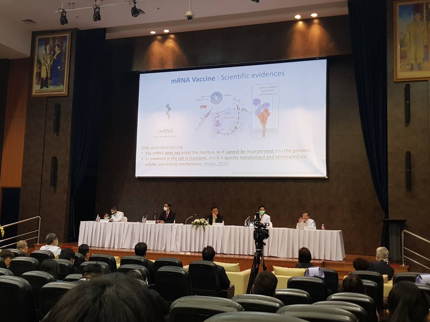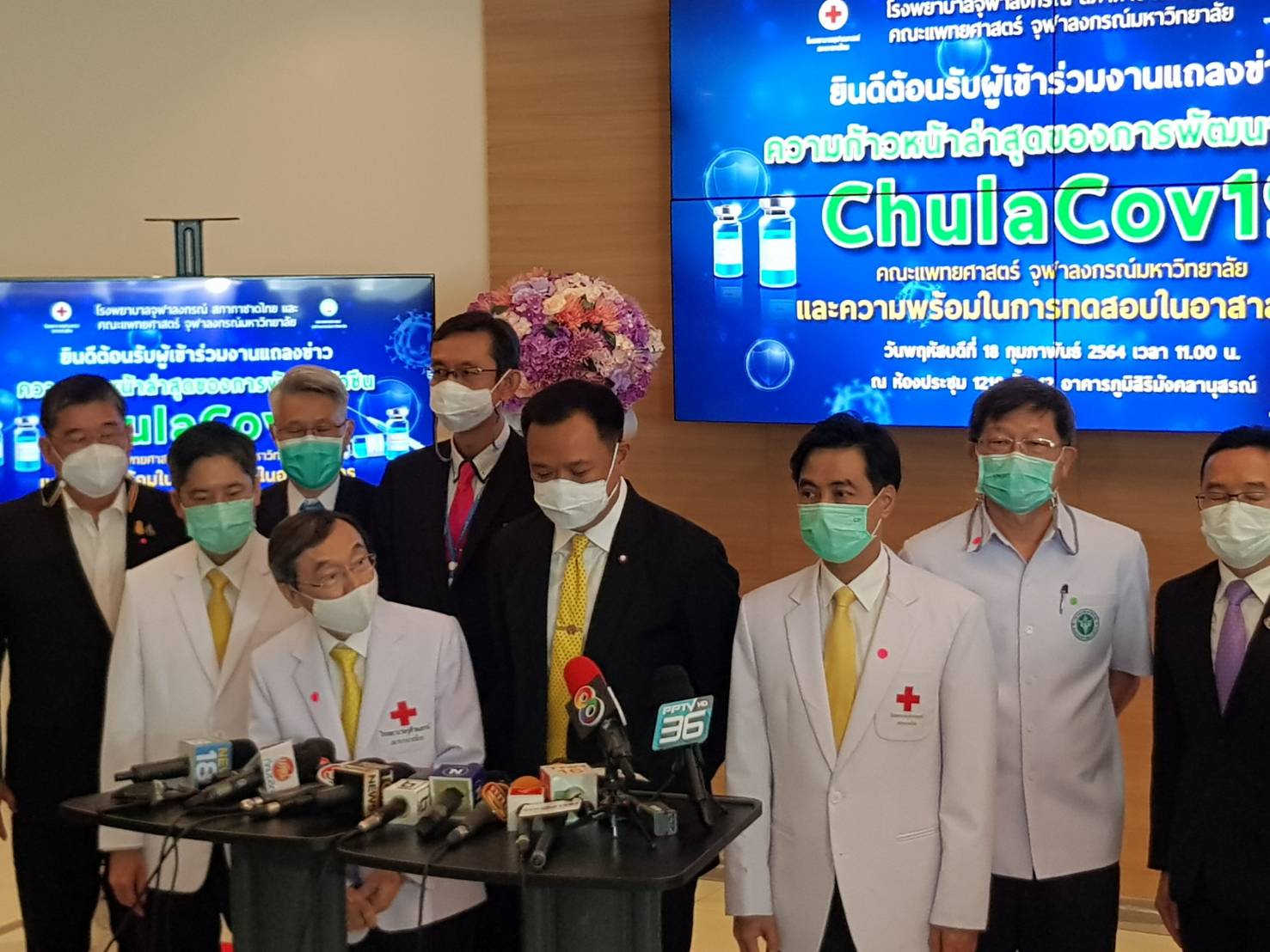 ศ.นพ.สุทธิพงศ์ วัชรสินธุ ผู้อำนวยการโรงพยาบาลจุฬาลงกรณ์ สภากาชาดไทย พร้อมด้วย ศ.นพ.เกียรติ รักษ์รุ่งธรรม ผู้อำนวยการบริหารโครงการพัฒนาวัคซีนโควิด-19 ศูนย์วิจัยวัคซีน คณะแพทยศาสตร์ จุฬาลงกรณ์มหาวิทยาลัย ร่วมแถลงข่าวความก้าวหน้าล่าสุดของการพัฒนาวัคซีน “ChulaCov19” และความพร้อมในการทดสอบในอาสาสมัคร โดยมีนายอนุทิน ชาญวีรกูล รองนายกรัฐมนตรี และรัฐมนตรีว่าการกระทรวงสาธารณสุข เข้าร่วมด้วย
